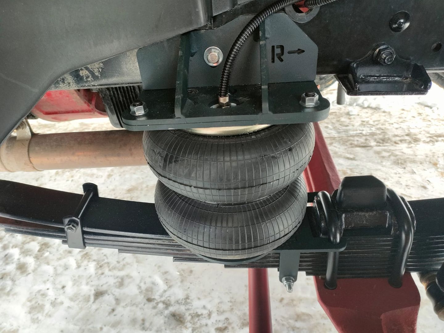 - комплект оборудования устанавливается в дополнение к заводским листовым рессорам. Чтобы его установить, не нужно разбирать машину, и Вы можете это выполнить своими руками без специалиста;