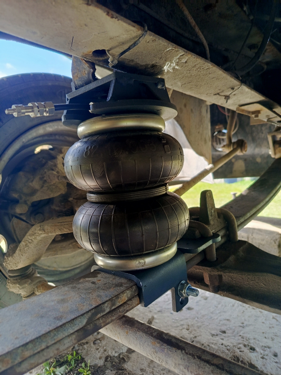 - пневмобаллон, лежащий в основе конструкции обеспечивает оптимальные характеристики работы подвески при разной загрузке. Можно отрегулировать жёсткость работы подушки давлением воздуха, подобрав этот параметр под себя. Этого нельзя сделать при усилении с помощью дополнительных листов, поэтому такие машины часто «козлит» при движении без груза;
