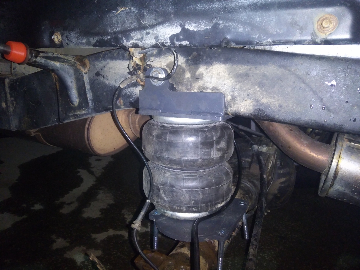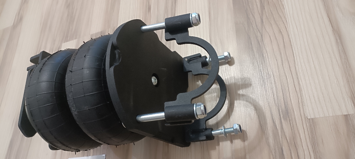 На самом деле всё проще, чем кажется. Основным рабочим элементом является пневморессора. Её еще называют пневмоподушкой, баллоном, пневмоэлементом, бубликами, сильфоном и т. д. Устанавливается пневмоэлемент между рамой и мостом шасси в автомобиле с помощью специальных кронштейнов для её надёжного крепления. В баллон подаётся сжатый воздух, при этом зажатая между рамой и мостом подушка пытается надуться, поднимая кузов. Звучит просто, а на деле каждая подушка способна поднять до 2000 кг груза! Сжатый воздух отводится от системы пневматичесих тормозов автомобиля, либо мы устанавливаем на микроавтобусы компрессорную систему. Поршневой компрессор работает от бортовой сети 12/24 В. Водитель следит за давлением в подушках по манометру и при необходимости подаёт или спускает из них давление.