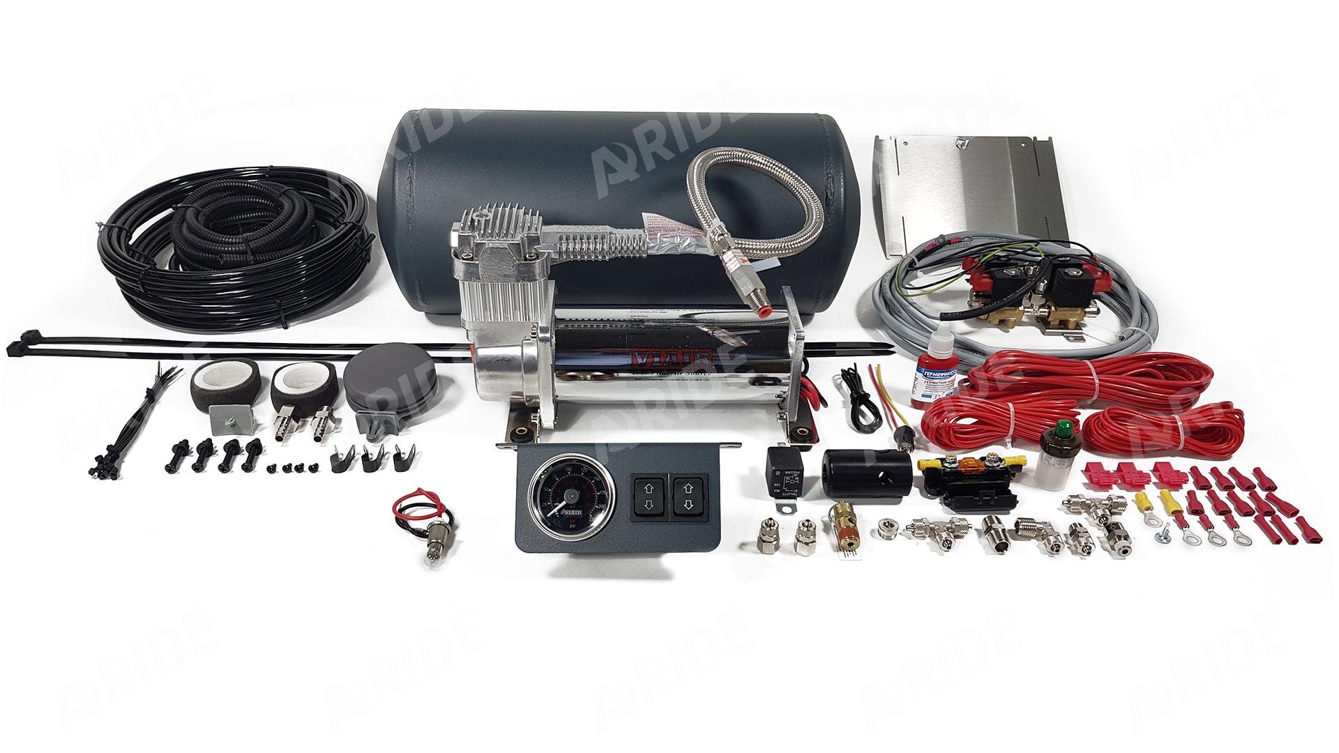 Далее система управления двухконтурная пневмоподвеской с ресивером 2.150.V по ее назначению может содержать в себе следующие комплектующие