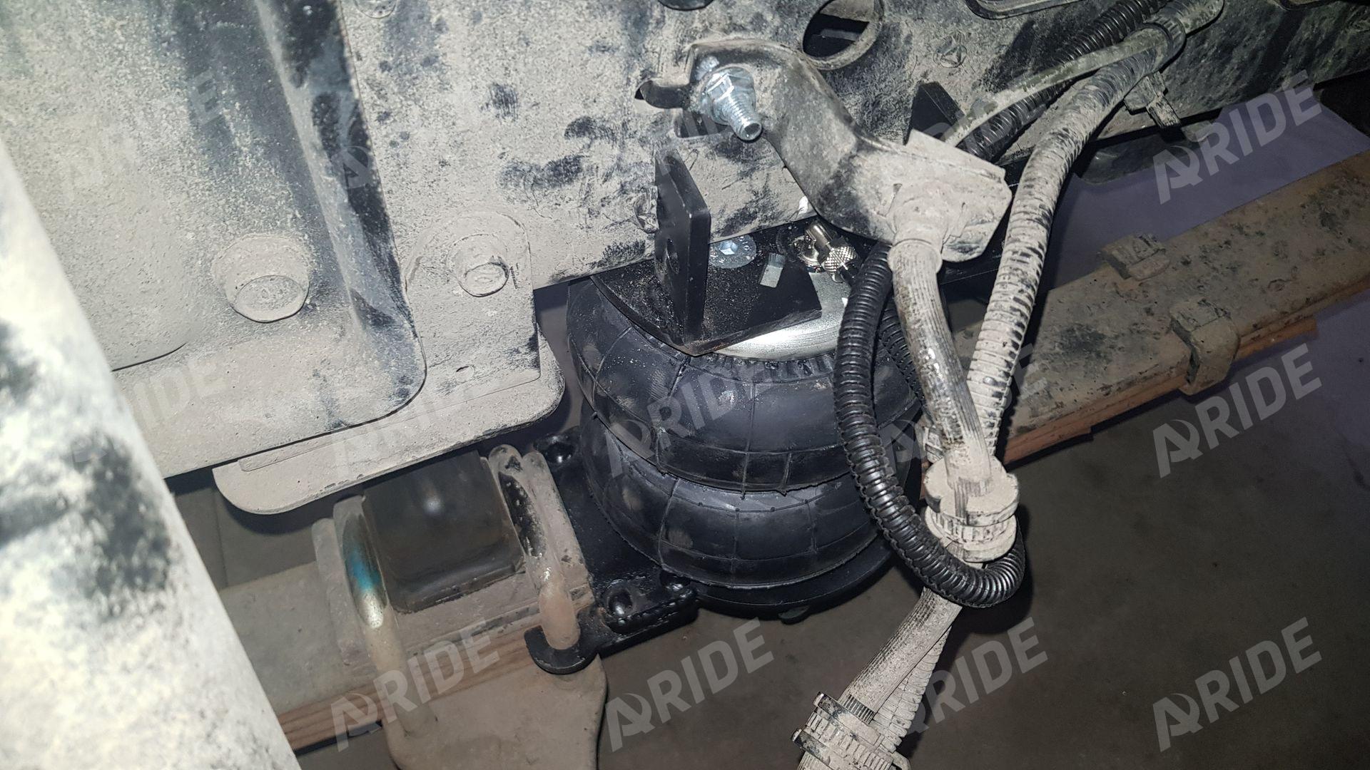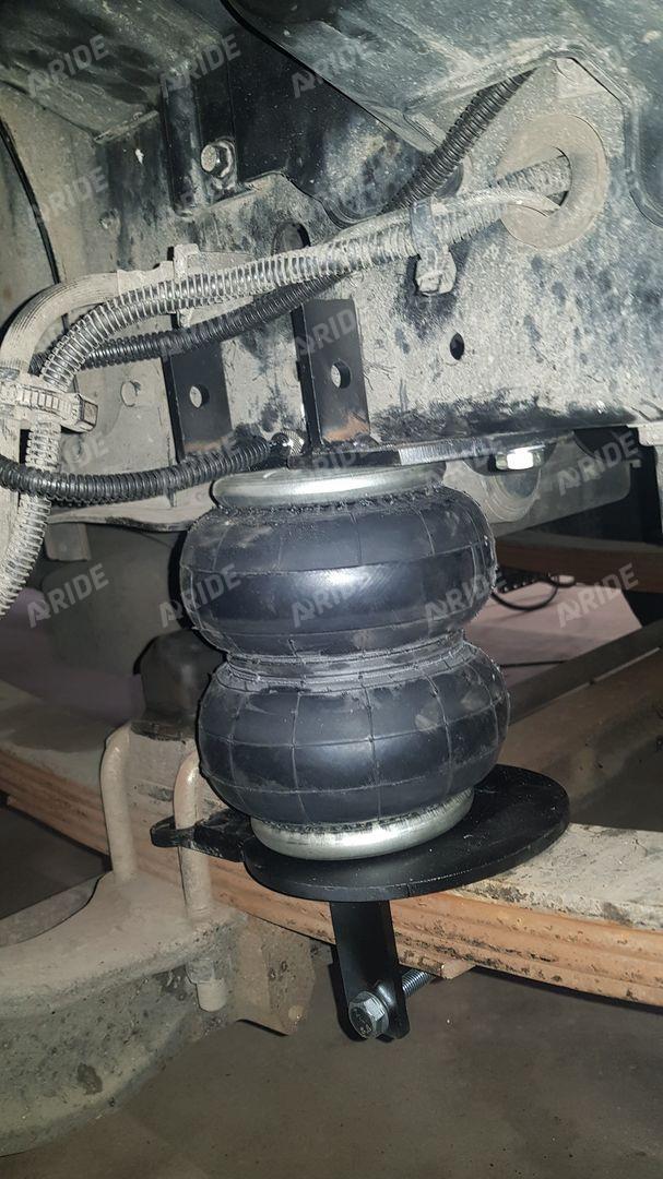Комплект пневмоподвески устанавливается в дополнение к штатным рессорам и не вносит изменения в штатные элементы подвески. Следовательно, данный комплект не требует вносить изменения в ПТС автомобиля. Пневмоподушка ставится между рамой с рессорами на специальных крепежных пластинах, идущих в комплекте. Верхняя крепежная пластина ставится на раму в штатные отверстия, между крепления ставится дополнительная поперечная распорка для усиления рамы и распределения нагрузки. Нижняя крепежная пластина ставится на мост.