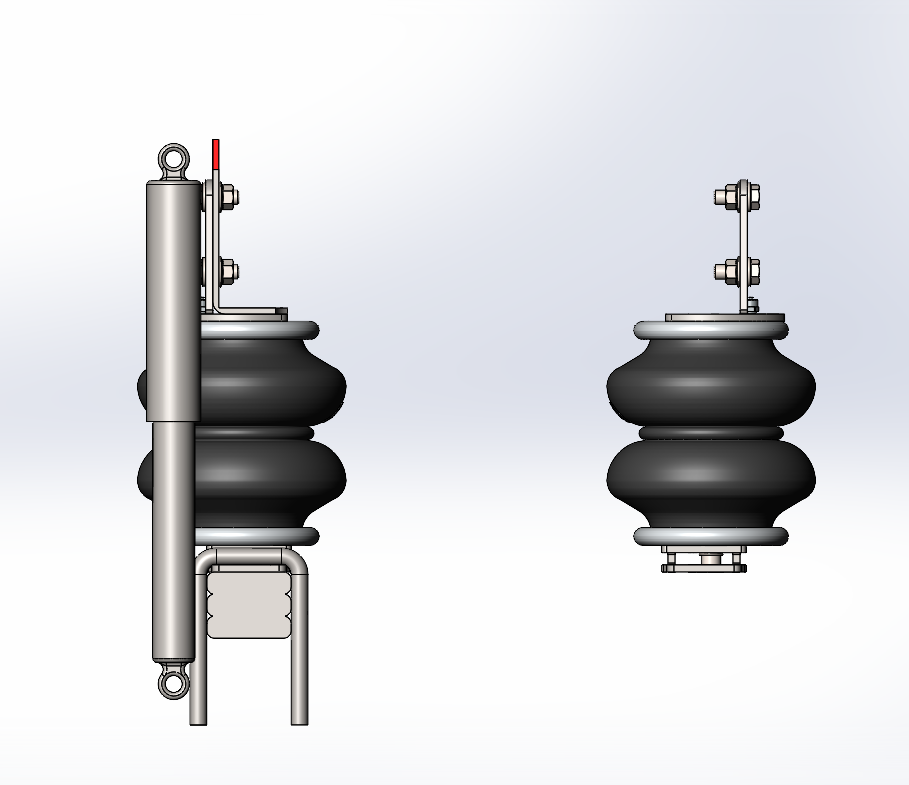Комплект пневматической подвески разработан специально для автомобиля и включает в себя два пневмоэлемента, кронштейны для крепления к раме и мосту, крепеж, фурнитуру для накачки от внешнего компрессора, инструкцию по установки своими руками.