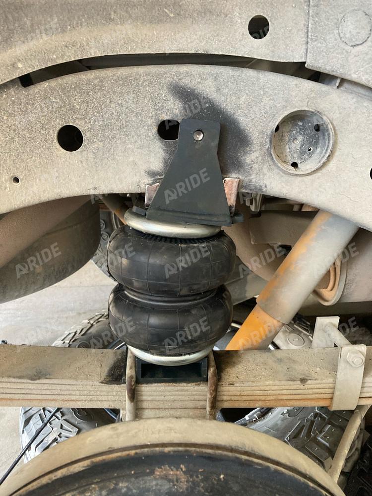 Комплект пневматической подвески разработан специально для автомобиля и включает в себя два пневмоэлемента, кронштейны для крепления к раме и мосту, крепеж, фурнитуру для накачки от внешнего компрессора, инструкцию по установки своими руками.