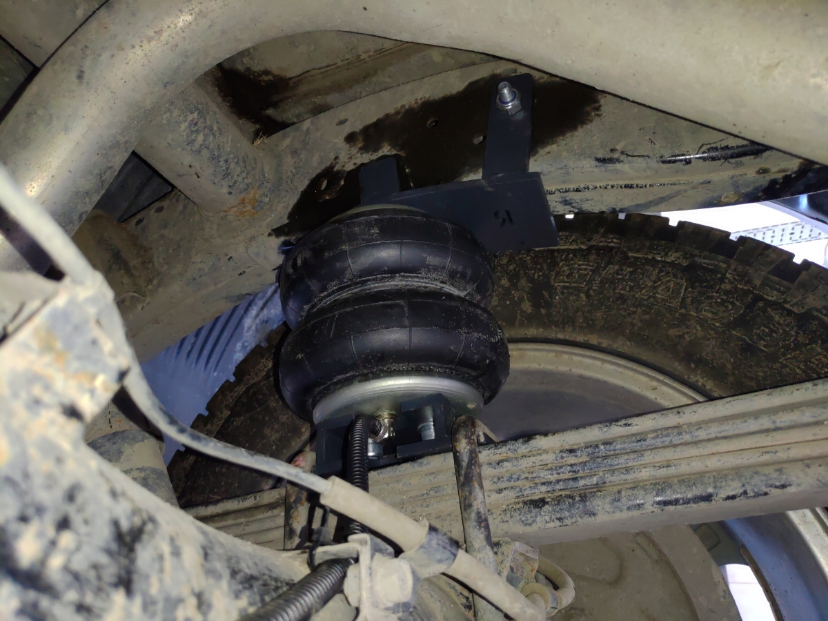 Комплект пневмоподвески устанавливается в дополнение к штатным рессорам и не вносит изменения в штатные элементы подвески. Следовательно, данный комплект не требует вносить изменения в ПТС автомобиля. Пневмоподушка ставится между рамой с рессорами на специальных крепежных пластинах, идущих в комплекте. Верхняя крепежная пластина ставится на раму в штатные отверстия, между крепления ставится дополнительная поперечная распорка для усиления рамы и распределения нагрузки. Нижняя крепежная пластина ставится на мост.