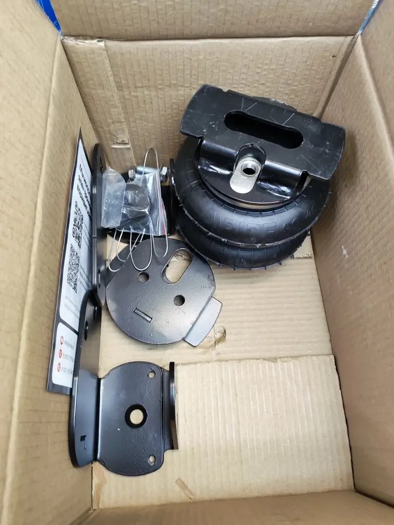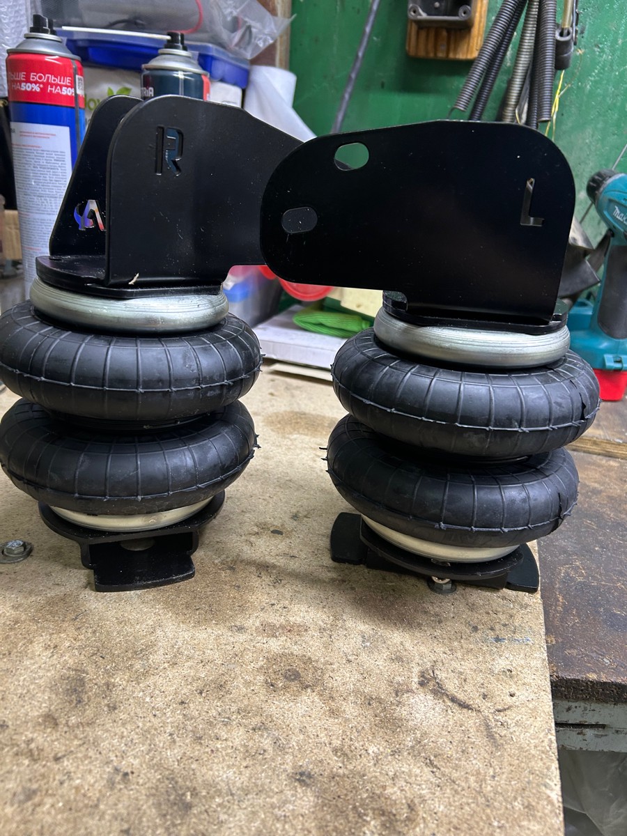 Комплект пневматической подвески разработан специально для автомобиля и включает в себя два пневмоэлемента, кронштейны для крепления к раме и мосту, крепеж, фурнитуру для накачки от внешнего компрессора, инструкцию по установки своими руками.