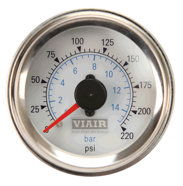 Характеристики - Манометр VIAIR 2" 220 PSI, 2 контура, с подсветкой, белый