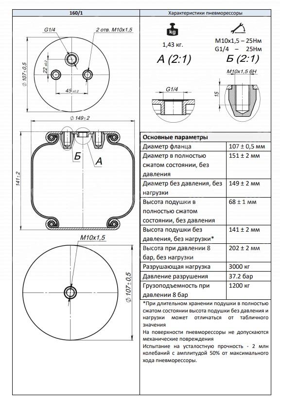 Пневматическая подушка 160/1, она же пневморессора, пневмобаллон, пневмоподушка – это РТИ (резинотехническое изделие) Российского производства, схожее по параметрам с зарубежными аналогами, но превосходящий в качестве. Данная пневматическая подушка выполнена в виде одинарного сильфона.
