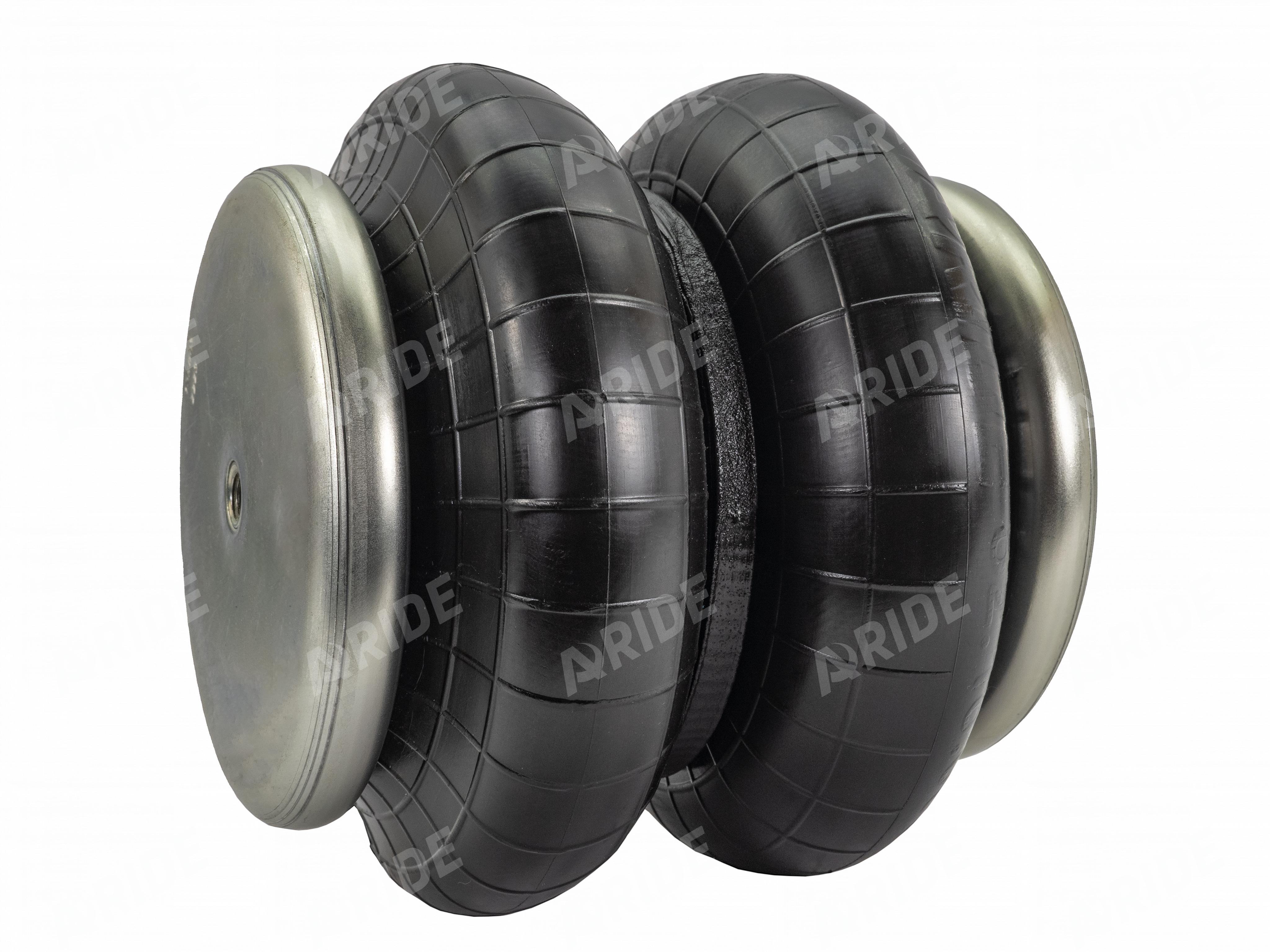 В качестве элементов, разделяющих пневмоподушку на секции, используются три цельнометаллических кольца. Два кольца расположены на верхней и нижней части, среднее кольцо располагается по центру, тем самым разделяя его на две части, что позволяет добиться больших углов наклона при её эксплуатации. Каждое из трёх металлических колец, надёжно впаяно в резиновую часть и скрыто от воздействия внешних агрессивных сред. Резина для пневмоэлемента изготавливается из высококачественного каучука, который не подвержен воздействию масла, бензина и других химических элементов. Такой состав изделия позволяет расширить температурный диапазон от -50 до +50 градусов по Цельсию.