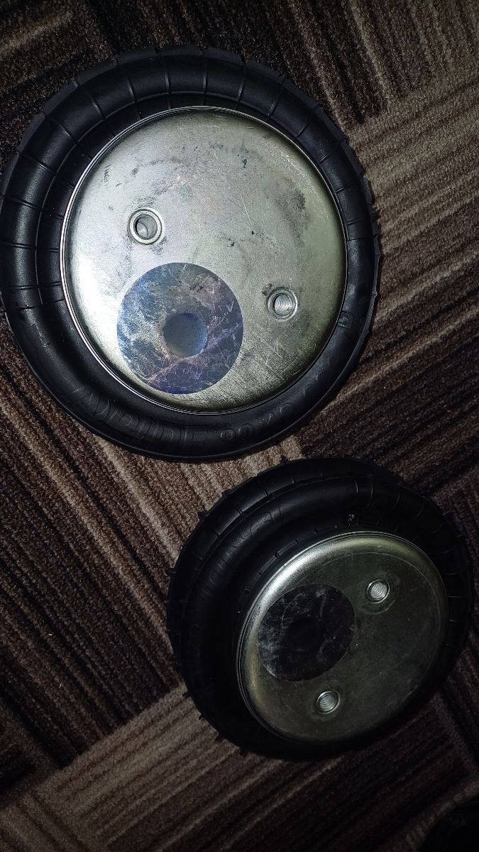 Верхняя и нижняя часть, герметично закрыты металлическими крышками. Данные крышки выштамповываются из конструкционной кипящей стали, она обладает повышенными требования по прочности. Штампованные крышки так же защищены от воздействия агрессивных сред, путём цинкования. Такой способ защиты позволяет в разы продлить срок службы металла и защищает его от коррозии на долгие годы. Данные крышки выполняют роль не только герметичных заглушек, а также используются как элементы крепления. В каждую крышку надёжно ввариваются стаканы с резьбой М10, позволяющие закрепить пневмоподушеки на кронштейне. Воздух подаётся в подушку через специальное резьбовое отверстие ¼”, расположенное на одной из крышек.