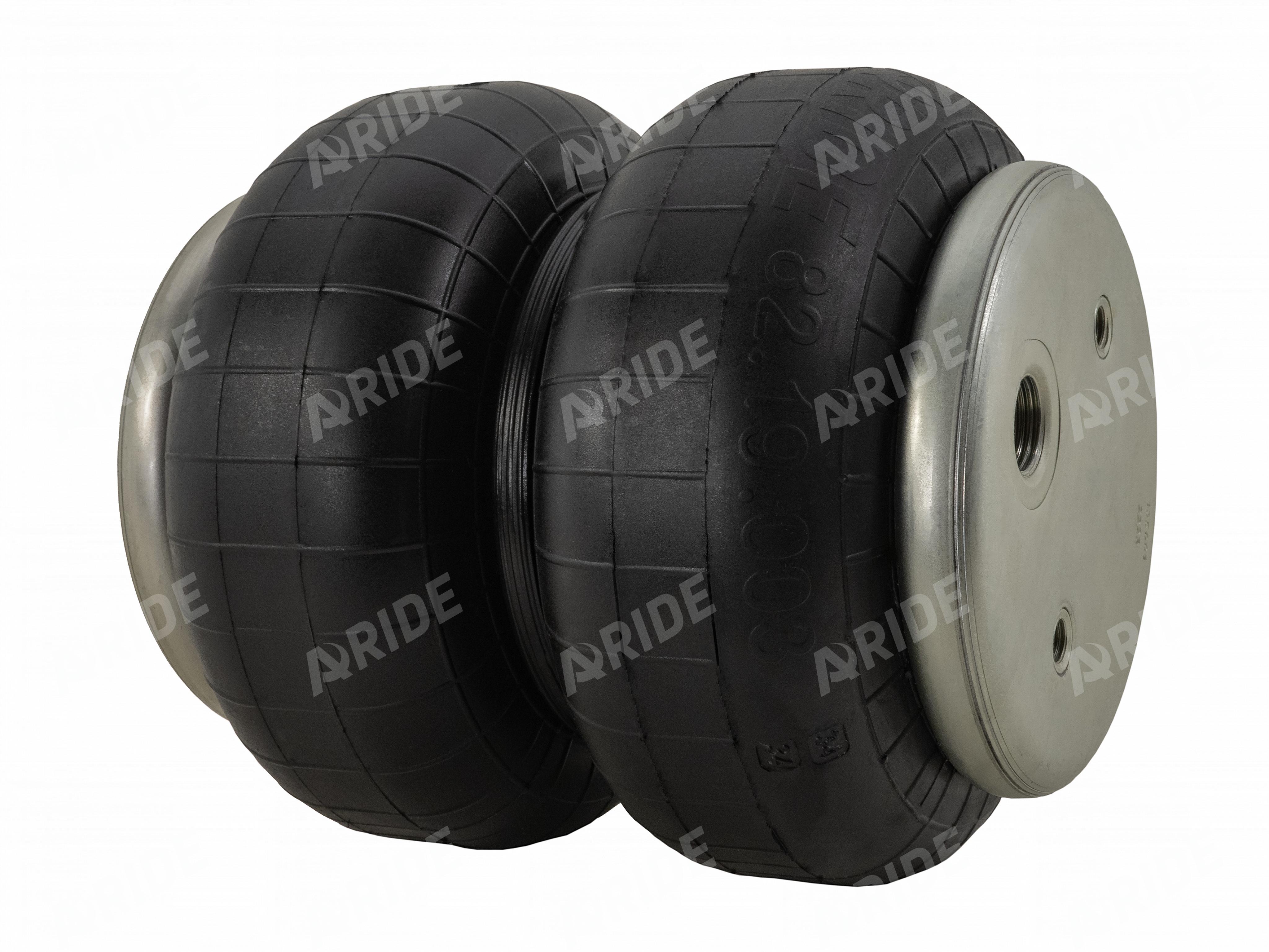 В качестве элементов, разделяющих пневмоподушку на секции, используются три цельнометаллических кольца. Два кольца расположены на верхней и нижней части, среднее кольцо располагается по центру, тем самым разделяя его на две части, что позволяет добиться больших углов наклона при её эксплуатации. Каждое из трёх металлических колец, надёжно впаяно в резиновую часть и скрыто от воздействия внешних агрессивных сред. Резина для пневмоэлемента изготавливается из высококачественного каучука, который не подвержен воздействию масла, бензина и других химических элементов. Такой состав изделия позволяет расширить температурный диапазон от -50 до +50 градусов по Цельсию.