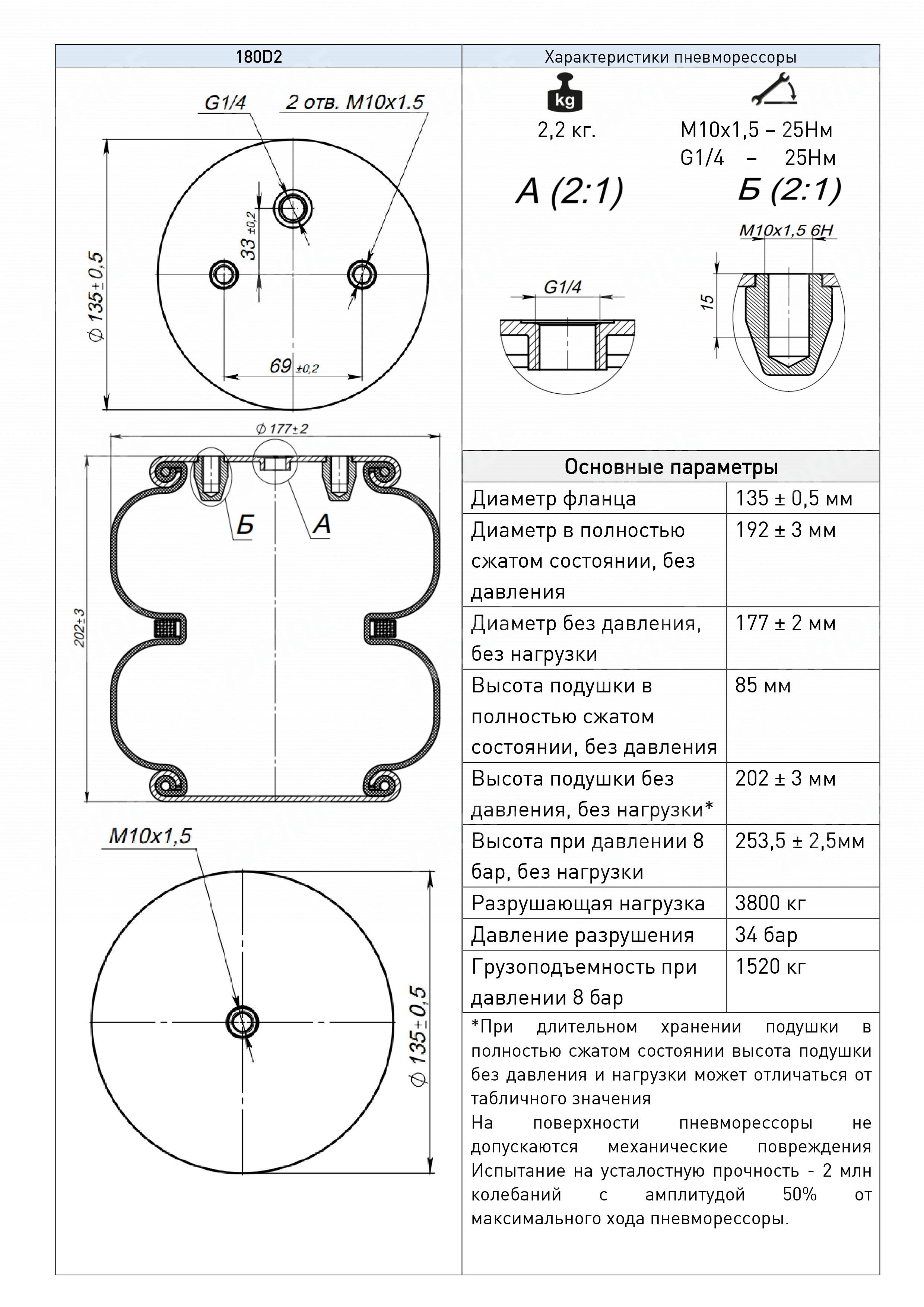 Пневматическая подушка 180D2, она же пневморессора, пневмобаллон, пневмоподушка – это РТИ (резинотехническое изделие) Российского производства, схожее по параметрам с зарубежными аналогами, но превосходящий в качестве. Данная пневматическая подушка выполнена в виде двойного сильфона.