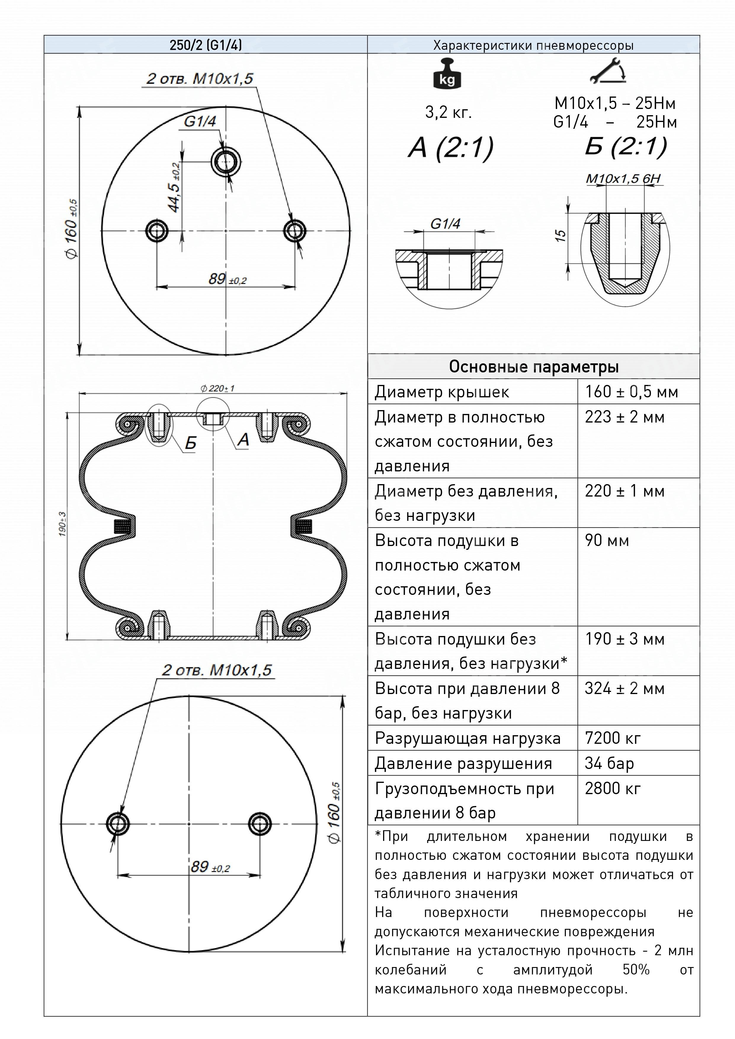 Пневматическая подушка 220 (арт. 250/2), она же пневморессора, пневмобаллон, пневмоподушка – это РТИ (резинотехническое изделие) Российского производства, схожее по параметрам с зарубежными аналогами, но превосходящий в качестве. Данная пневматическая подушка выполнена в виде двойного сильфона.