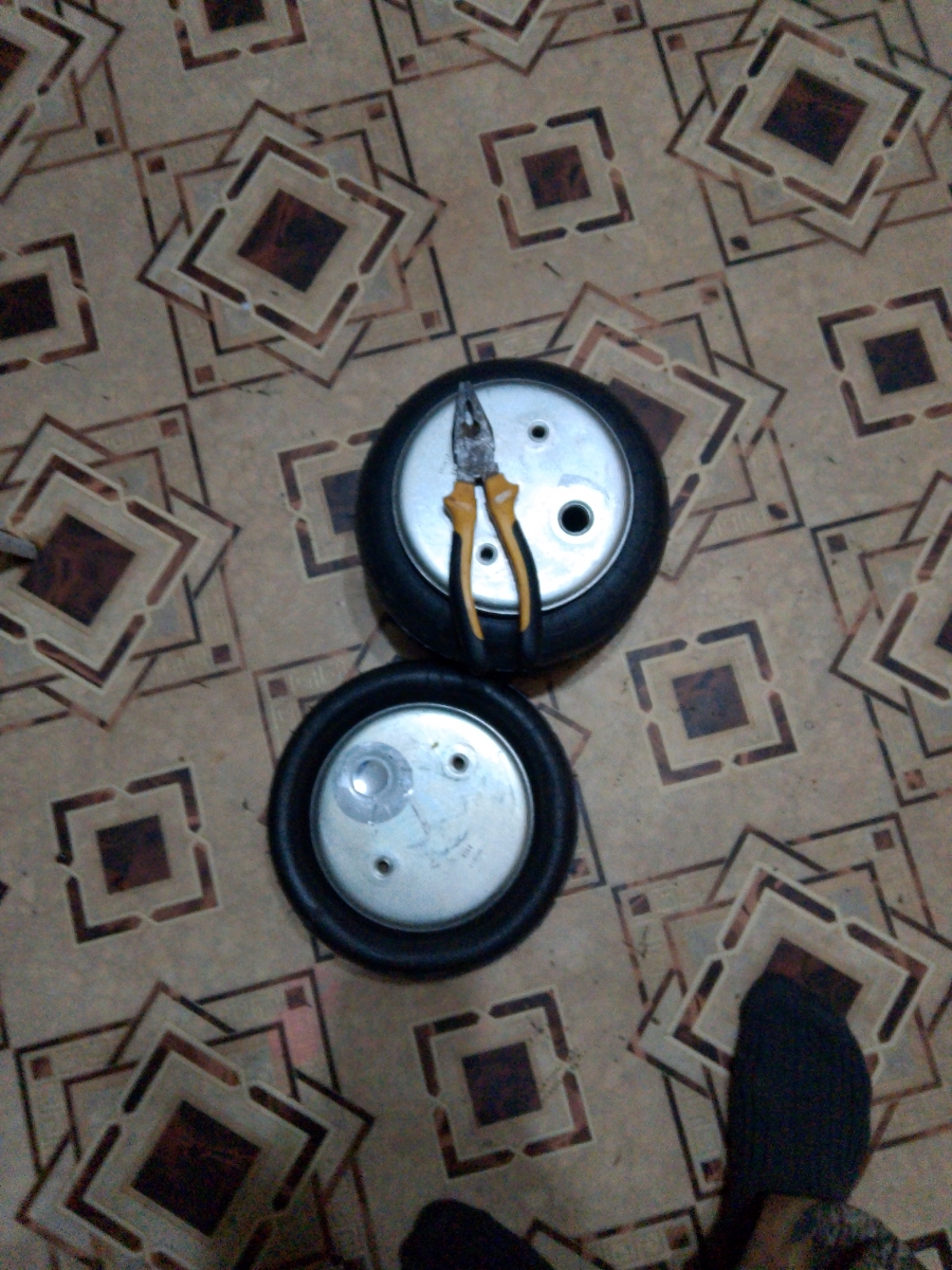 Верхняя и нижняя часть, герметично закрыты металлическими крышками. Данные крышки выштамповываются из конструкционной кипящей стали, она обладает повышенными требования по прочности. Штампованные крышки так же защищены от воздействия агрессивных сред, путём цинкования. Такой способ защиты позволяет в разы продлить срок службы металла и защищает его от коррозии на долгие годы. Данные крышки выполняют роль не только герметичных заглушек, а также используются как элементы крепления. В каждую крышку надёжно ввариваются стаканы с резьбой М10, позволяющие закрепить пневмоподушеки на кронштейне. Воздух подаётся в подушку через специальное резьбовое отверстие ¼”, расположенное на одной из крышек.