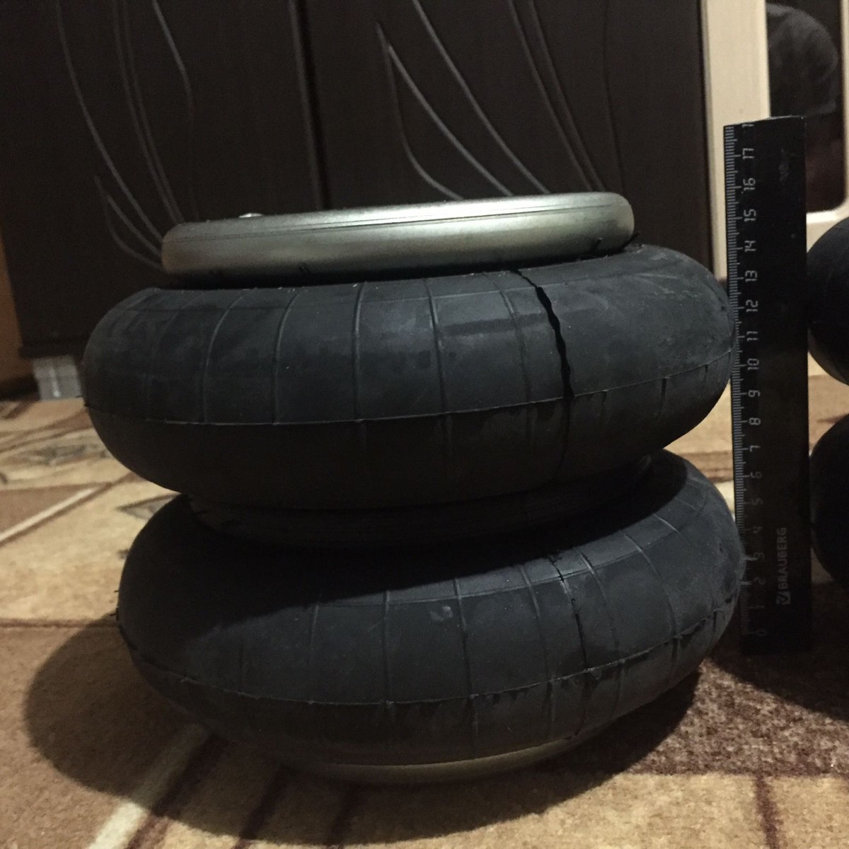 В качестве элементов, разделяющих пневмоподушку на секции, используются три цельнометаллических кольца. Два кольца расположены на верхней и нижней части, среднее кольцо располагается по центру, тем самым разделяя его на две части, что позволяет добиться больших углов наклона при её эксплуатации. Каждое из трёх металлических колец, надёжно впаяно в резиновую часть и скрыто от воздействия внешних агрессивных сред. Резина для пневмоэлемента изготавливается из высококачественного каучука, который не подвержен воздействию масла, бензина и других химических элементов. Такой состав изделия позволяет расширить температурный диапазон от -50 до +50 градусов по Цельсию.