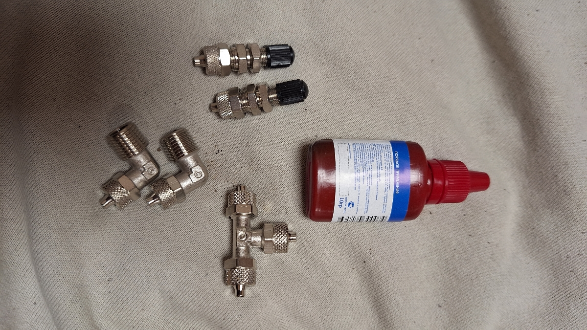 - воздушные фитинги и пневмомагистраль фирмы Camozzi, в комплекте идет 7 метров пневмошланга что позволяет вывести ниппель подкачки в любую часть автомобиля