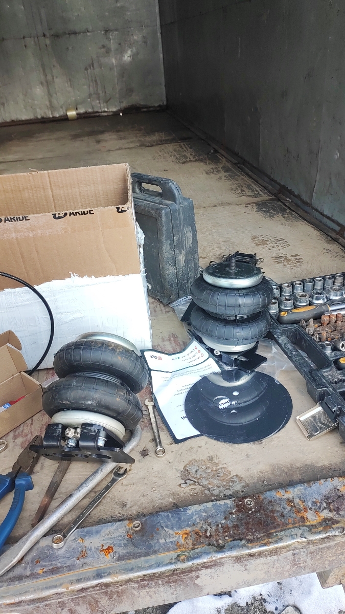 Комплект пневматической подвески разработан специально для автомобиля и включает в себя два пневмоэлемента, кронштейны для крепления к раме и мосту, крепеж, фурнитуру для накачки от внешнего компрессора, инструкцию по установки своими руками.