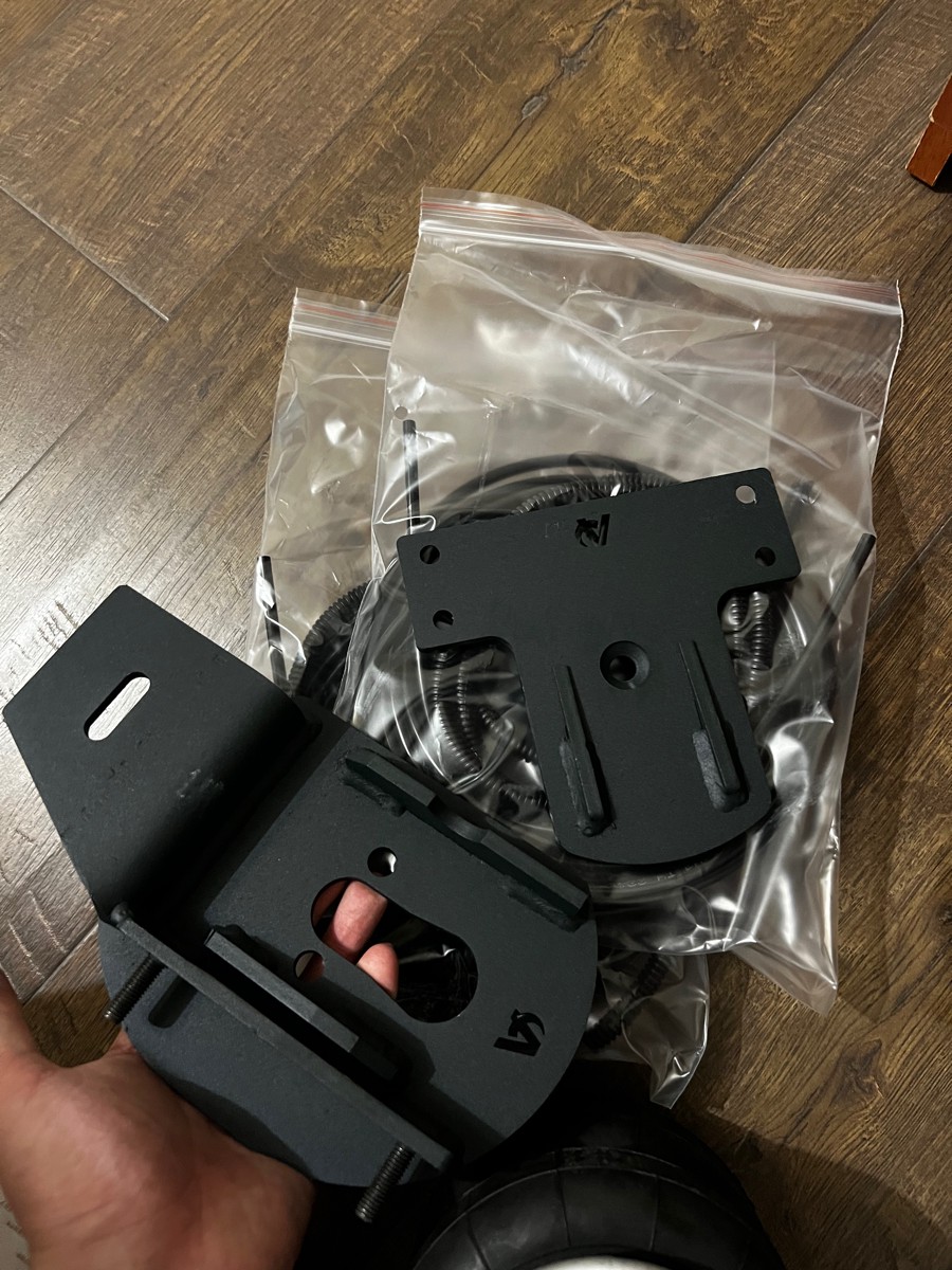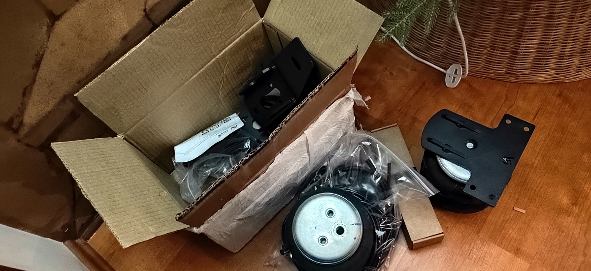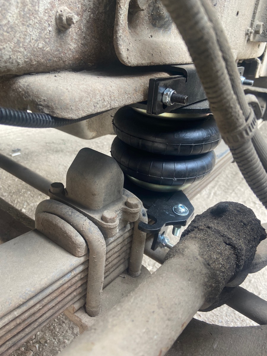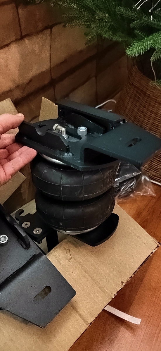 Комплект пневматической подвески разработан специально для автомобиля и включает в себя два пневмоэлемента, кронштейны для крепления к раме и мосту, крепеж, фурнитуру для накачки от внешнего компрессора, инструкцию по установки своими руками.