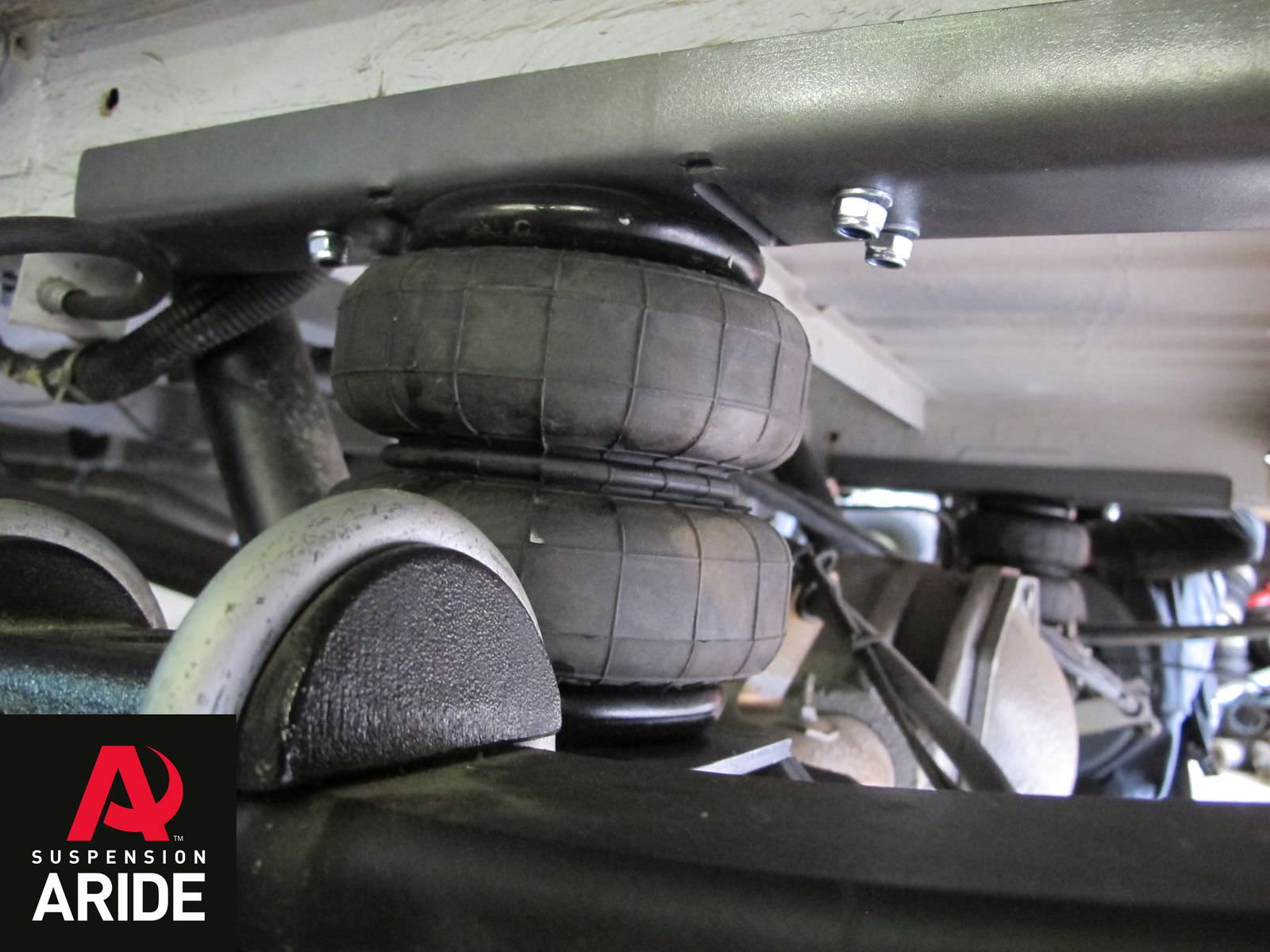 Комплект пневмоподвески устанавливается в дополнение к штатным рессорам и не вносит изменения в штатные элементы подвески. Следовательно, данный комплект не требует вносить изменения в ПТС автомобиля. Пневмоподушка ставится между рамой с рессорами на специальных крепежных пластинах, идущих в комплекте. Верхняя крепежная пластина ставится на раму в штатные отверстия, между крепления ставится дополнительная поперечная распорка для усиления рамы и распределения нагрузки. Нижняя крепежная пластина ставится на мост.