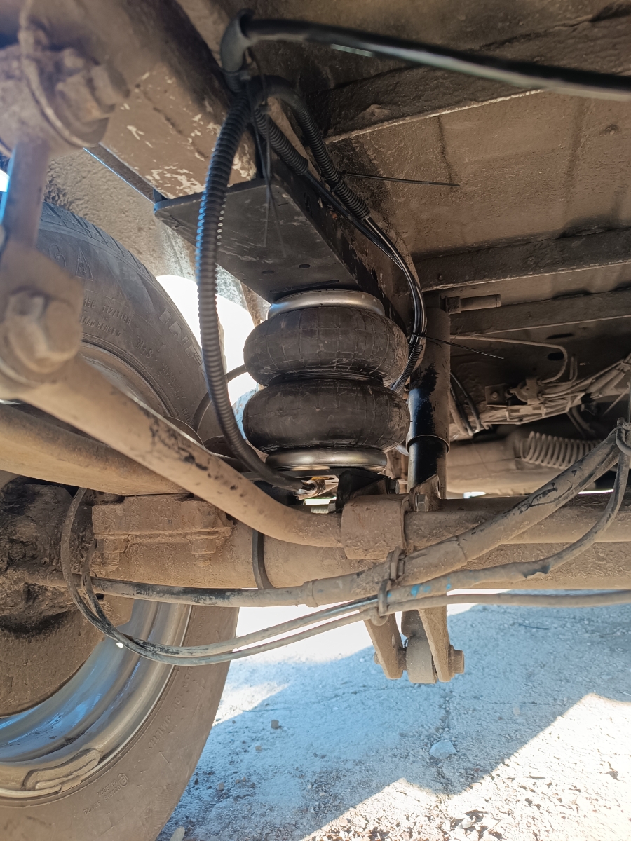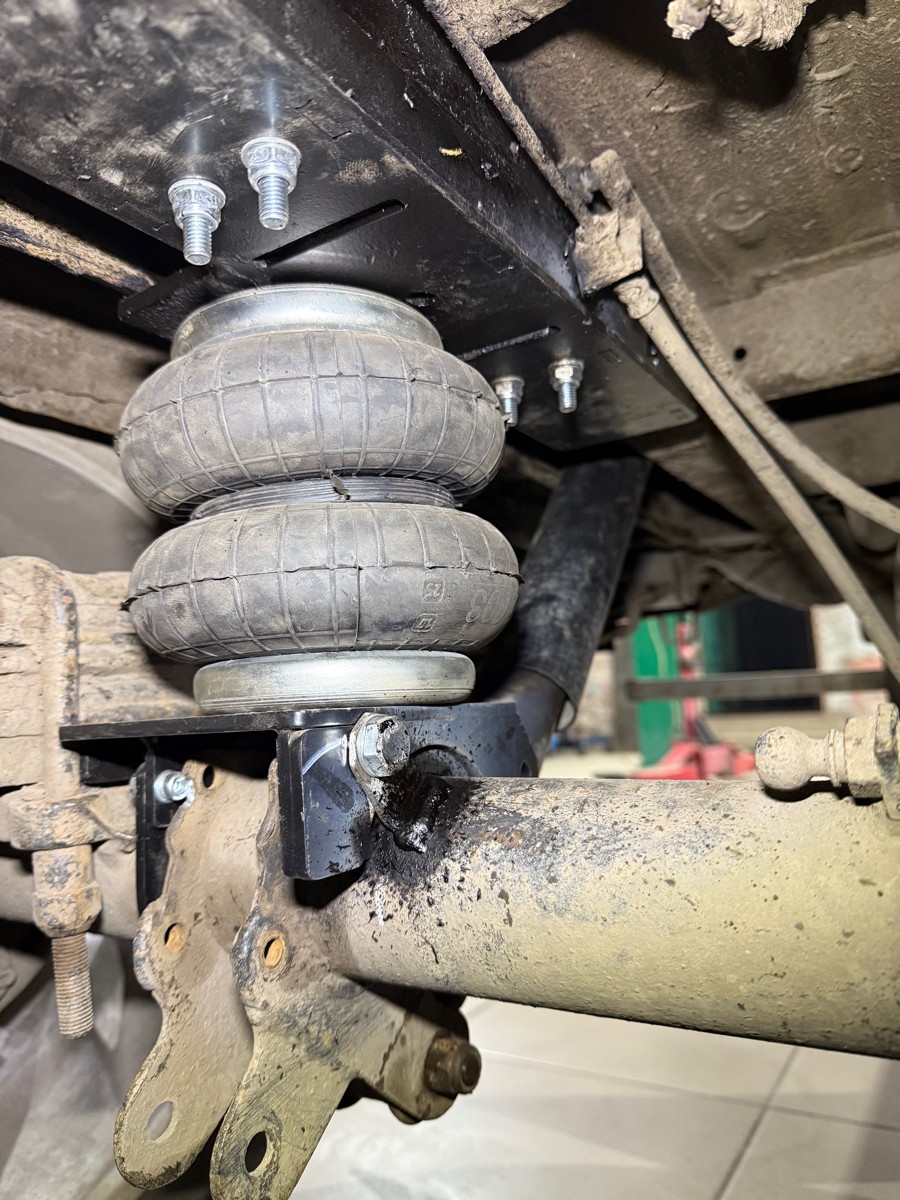 Комплект пневматической подвески разработан специально для автомобиля и включает в себя два пневмоэлемента, кронштейны для крепления к раме и мосту, крепеж, фурнитуру для накачки от внешнего компрессора, инструкцию по установки своими руками.