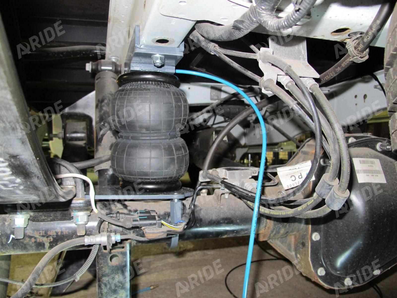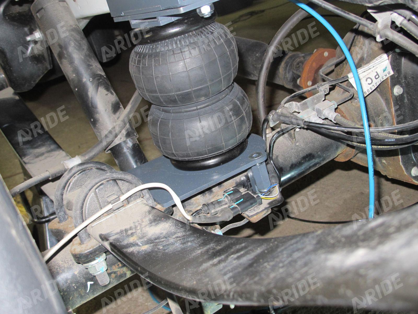 Комплект пневмоподвески устанавливается в дополнение к штатным рессорам и не вносит изменения в штатные элементы подвески. Следовательно, данный комплект не требует вносить изменения в ПТС автомобиля. Пневмоподушка ставится между рамой с рессорами на специальных крепежных пластинах, идущих в комплекте. Верхняя крепежная пластина ставится на раму в штатные отверстия, между крепления ставится дополнительная поперечная распорка для усиления рамы и распределения нагрузки. Нижняя крепежная пластина ставится на мост.