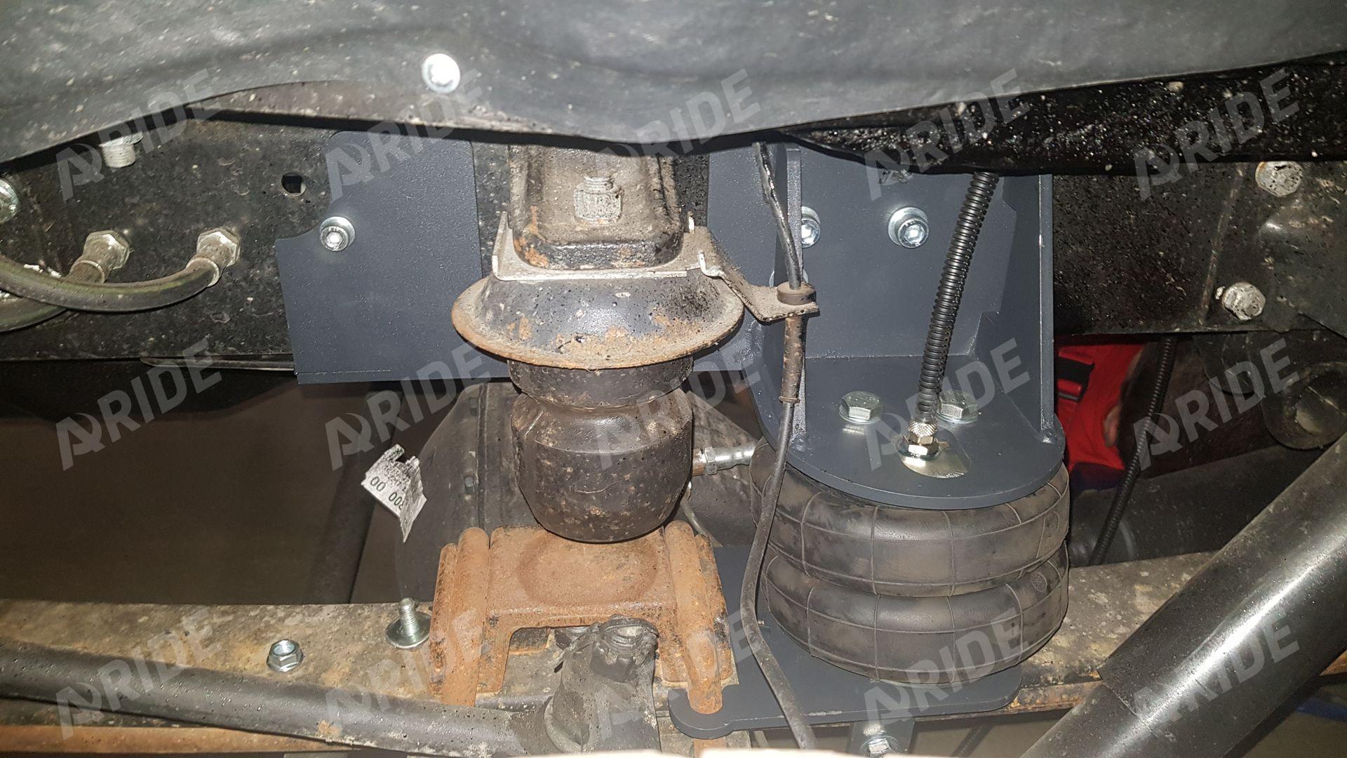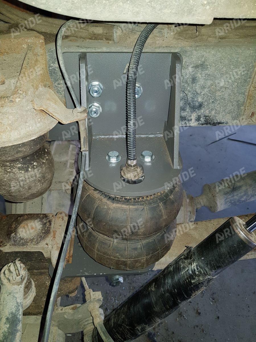 Комплект пневмоподвески устанавливается в дополнение к штатным рессорам и не вносит изменения в штатные элементы подвески. Следовательно, данный комплект не требует вносить изменения в ПТС автомобиля. Пневмоподушка ставится между рамой с рессорами на специальных крепежных пластинах, идущих в комплекте. Верхняя крепежная пластина ставится на раму в штатные отверстия, между крепления ставится дополнительная поперечная распорка для усиления рамы и распределения нагрузки. Нижняя крепежная пластина ставится на мост.
