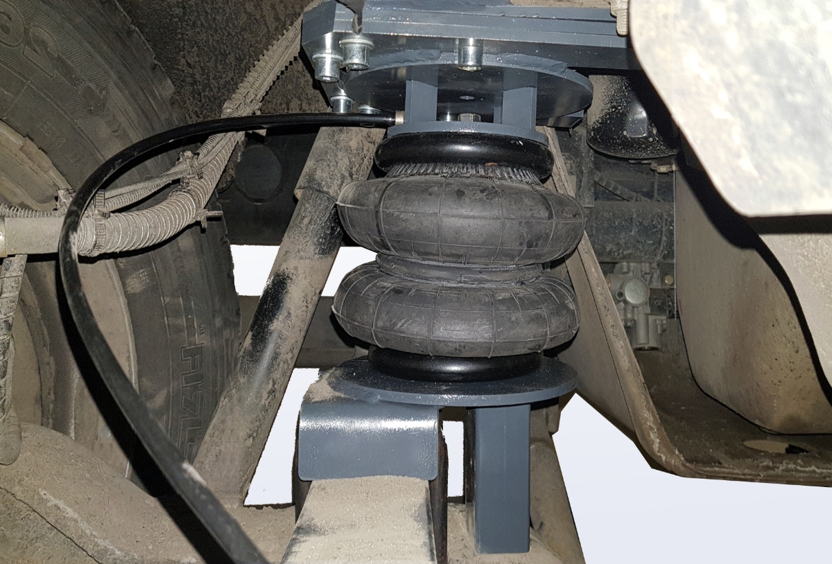 Комплект пневмоподвески устанавливается в дополнение к штатным рессорам и не вносит изменения в штатные элементы подвески. Следовательно, данный комплект не требует вносить изменения в ПТС автомобиля. Пневмоподушка ставится между рамой с рычагами на специальных крепежных пластинах, идущих в комплекте. Верхняя крепежная пластина ставится на раму в штатные отверстия, нижняя крепежная пластина ставится на рычаг.