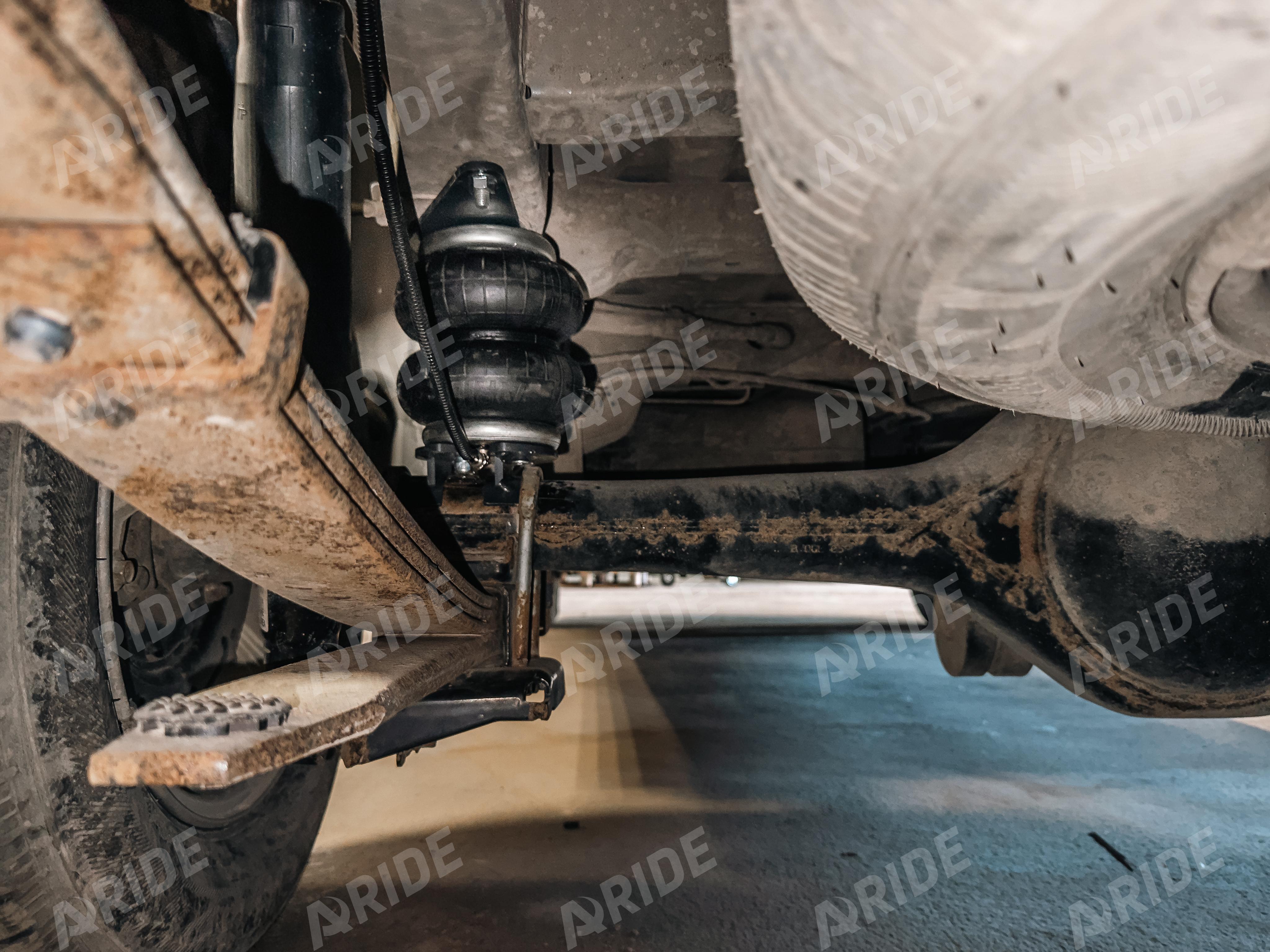Комплект пневматической подвески разработан специально для автомобиля и включает в себя два пневмоэлемента, кронштейны для крепления к раме и мосту, крепеж, фурнитуру для накачки от внешнего компрессора, инструкцию по установки своими руками.