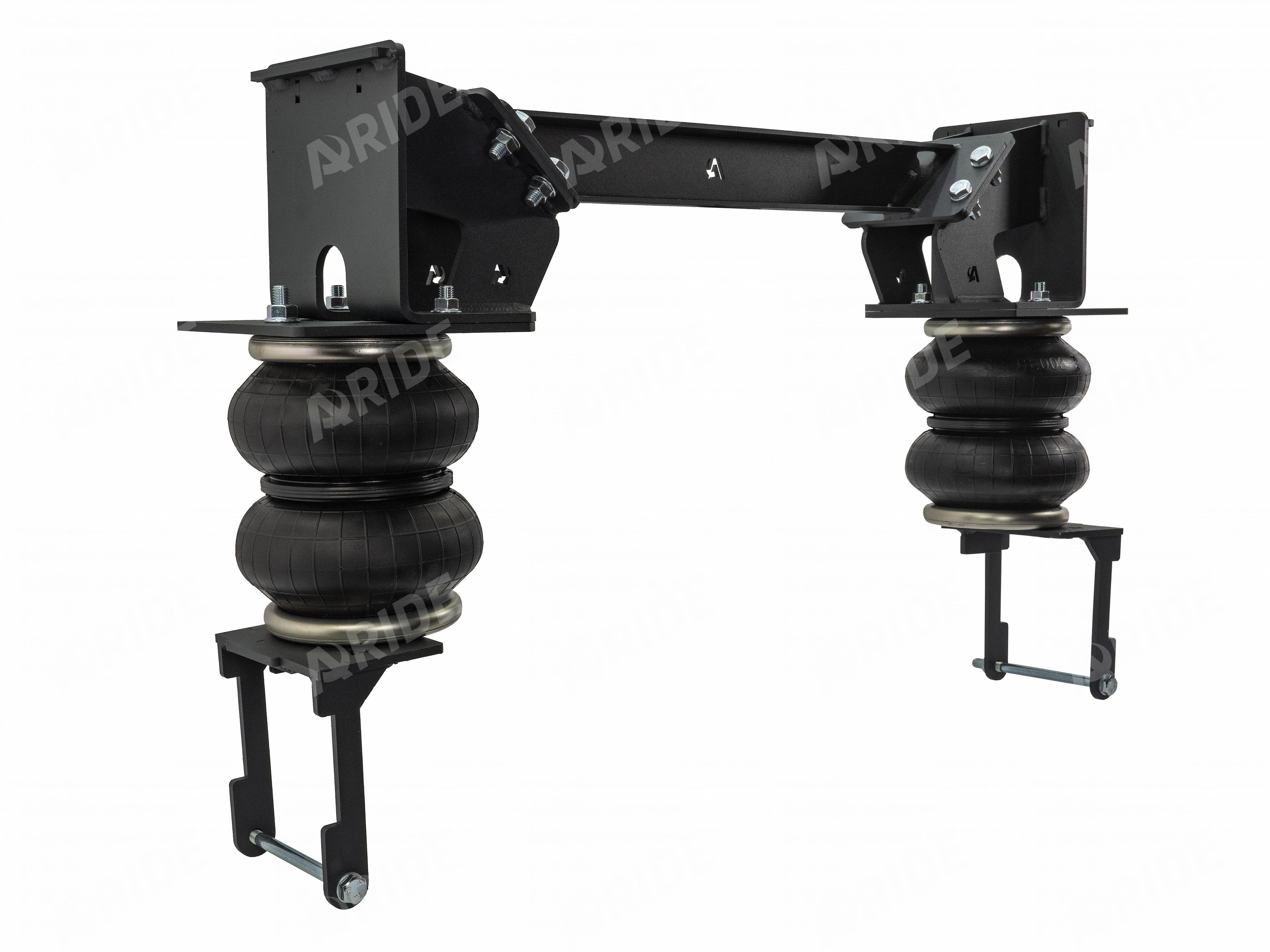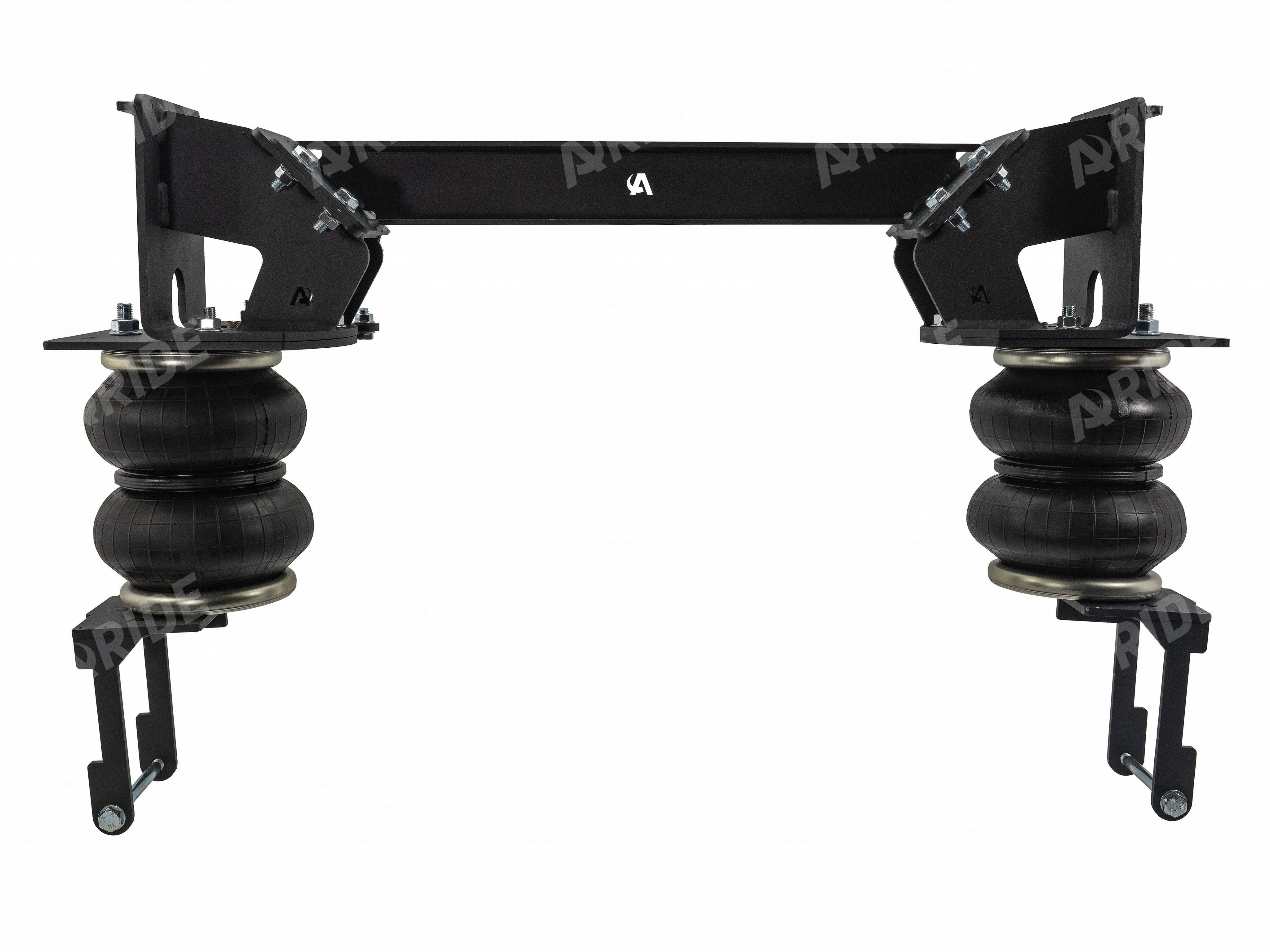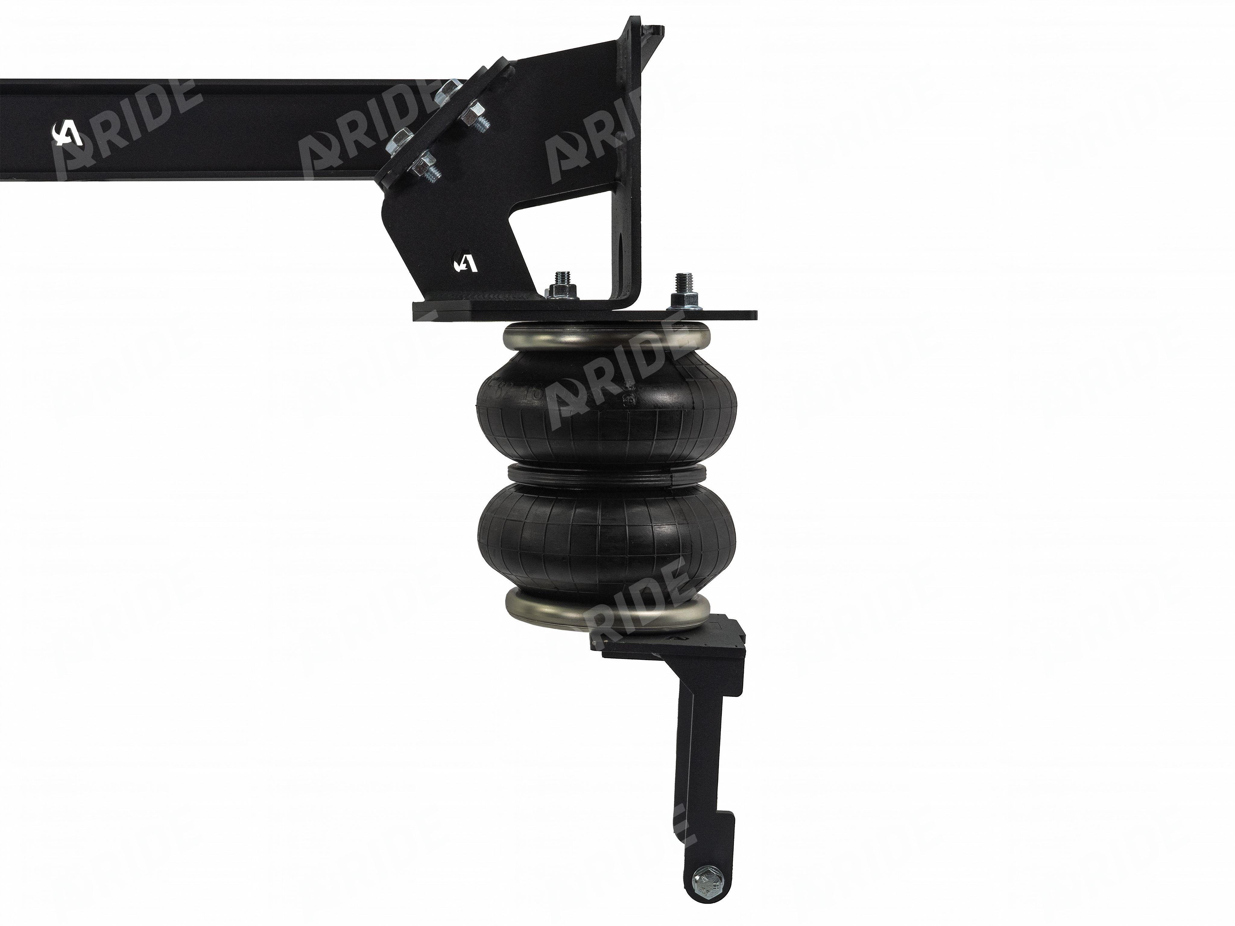 Комплект пневматической подвески разработан специально для автомобиля и включает в себя два пневмоэлемента, кронштейны для крепления к раме и мосту, крепеж, фурнитуру для накачки от внешнего компрессора, инструкцию по установки своими руками.
