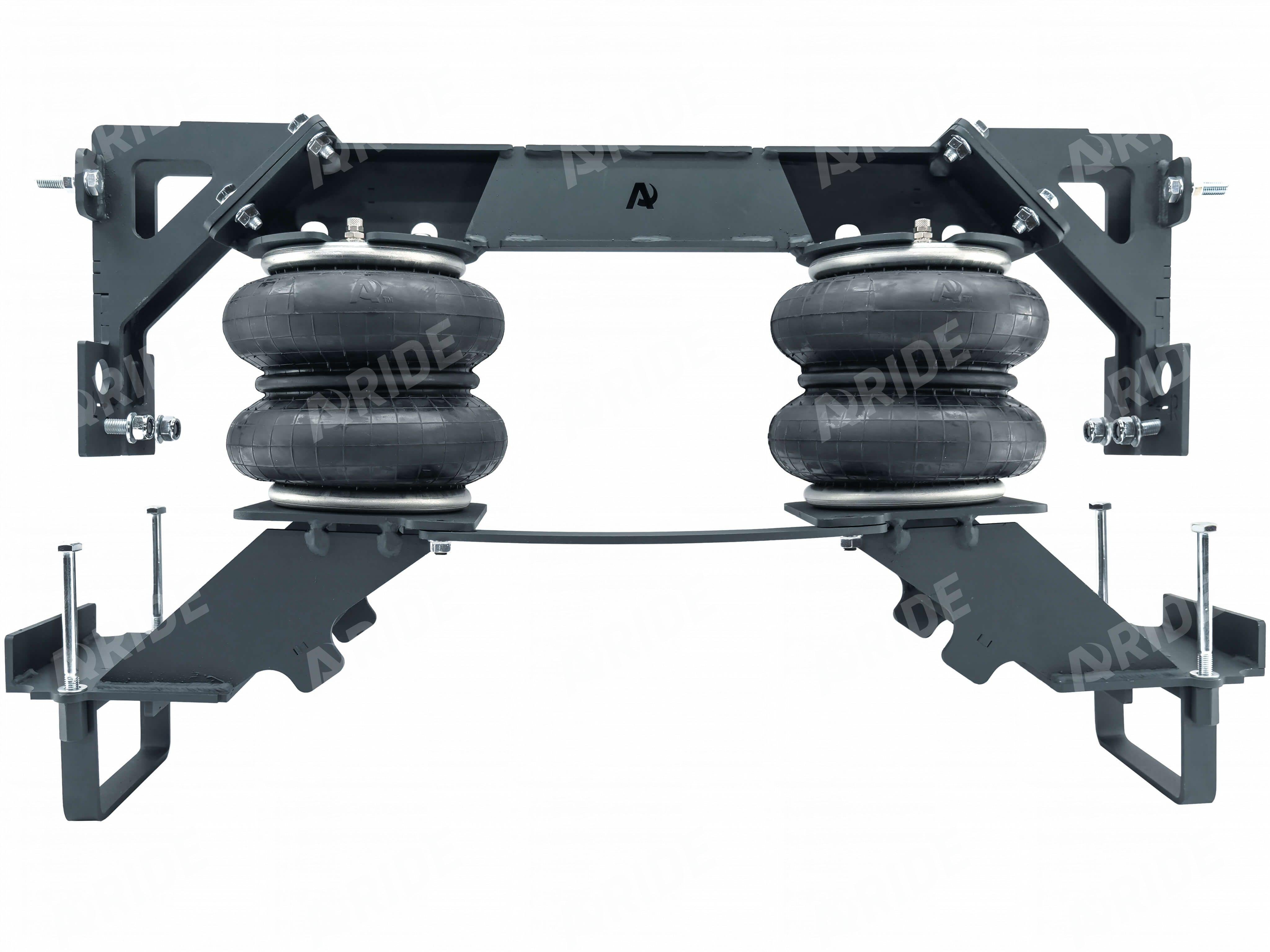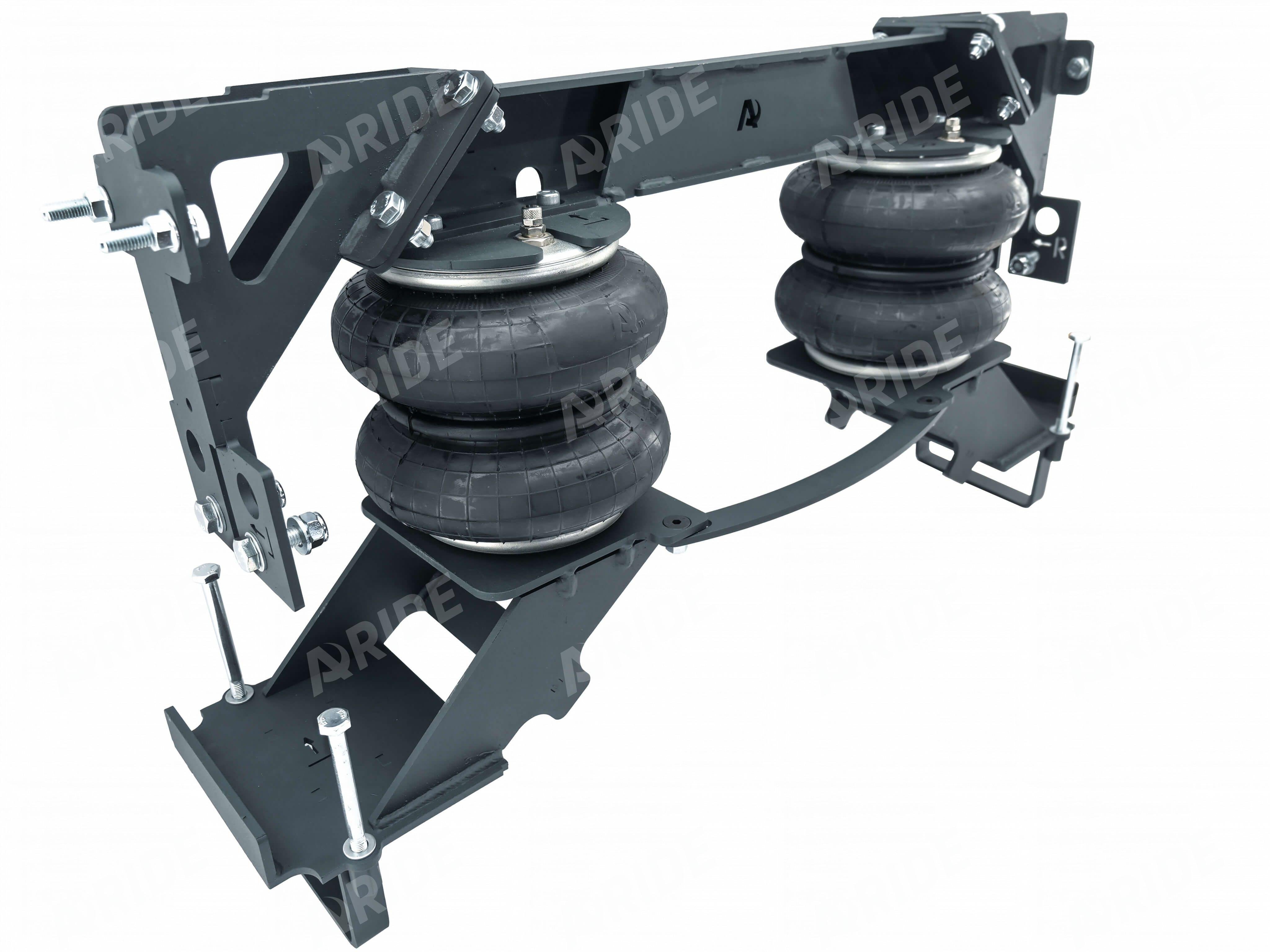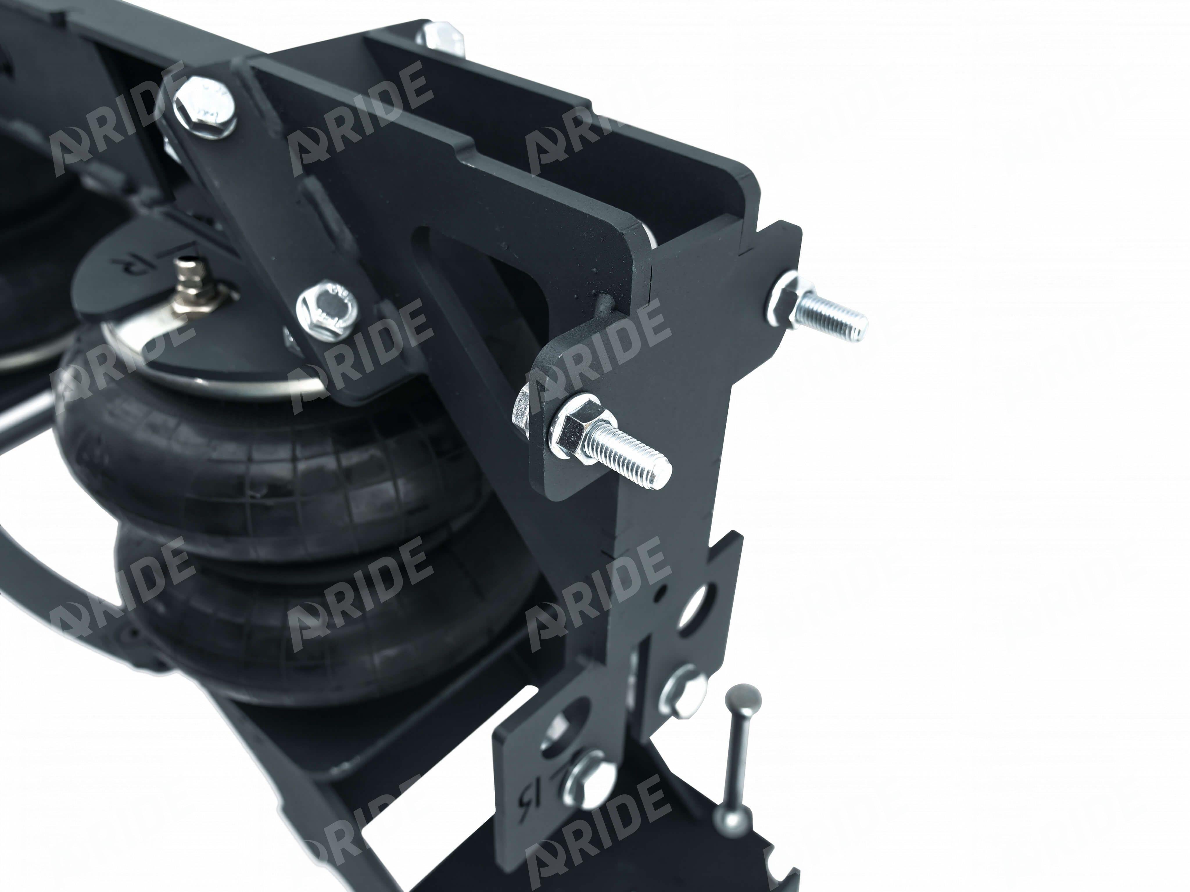 Комплект пневматической подвески разработан специально для автомобиля и включает в себя два пневмоэлемента, кронштейны для крепления к раме и мосту, крепеж, фурнитуру для накачки от внешнего компрессора, инструкцию по установки своими руками.
