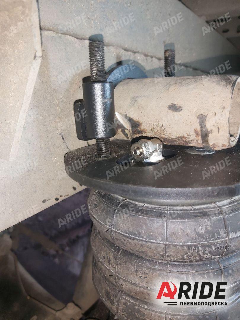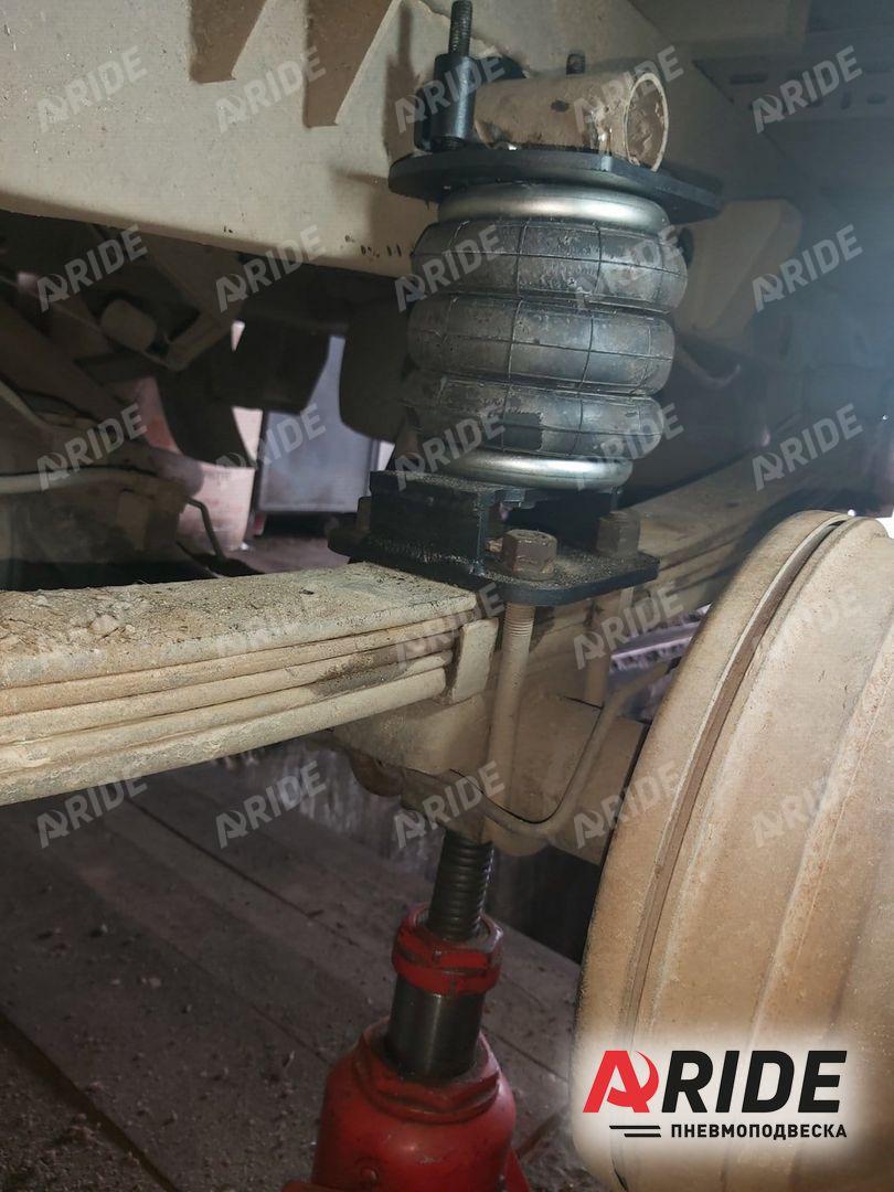 Комплект пневмоподвески устанавливается в дополнение к штатным рессорам и не вносит изменения в штатные элементы подвески. Следовательно, данный комплект не требует вносить изменения в ПТС автомобиля. Пневмоподушка ставится между рамой с рессорами на специальных крепежных пластинах, идущих в комплекте. Верхняя крепежная пластина ставится на раму в штатные отверстия, между крепления ставится дополнительная поперечная распорка для усиления рамы и распределения нагрузки. Нижняя крепежная пластина ставится на мост.