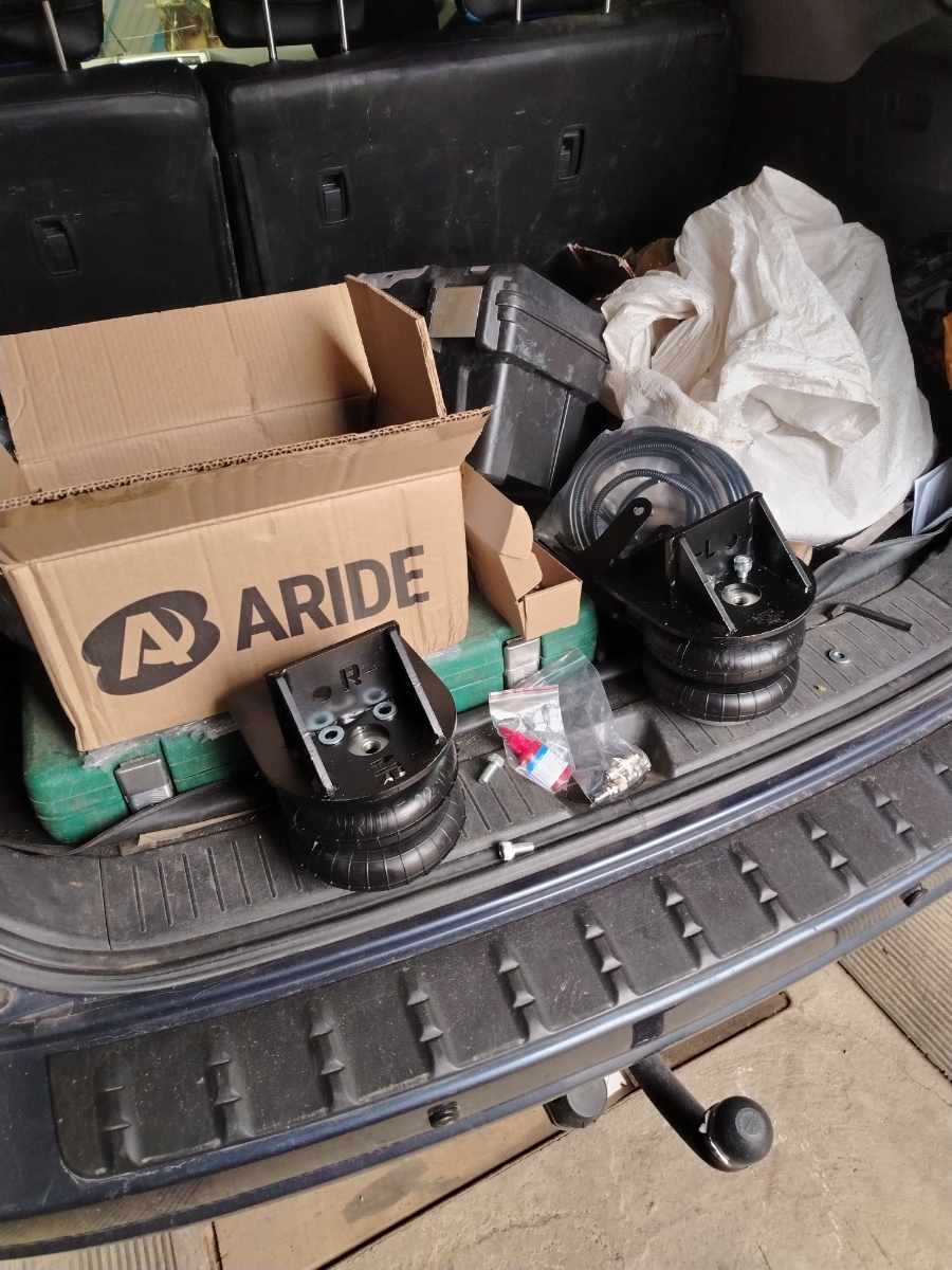 Комплект пневматической подвески разработан специально для автомобиля и включает в себя два пневмоэлемента, кронштейны для крепления к раме и мосту, крепеж, фурнитуру для накачки от внешнего компрессора, инструкцию по установки своими руками.