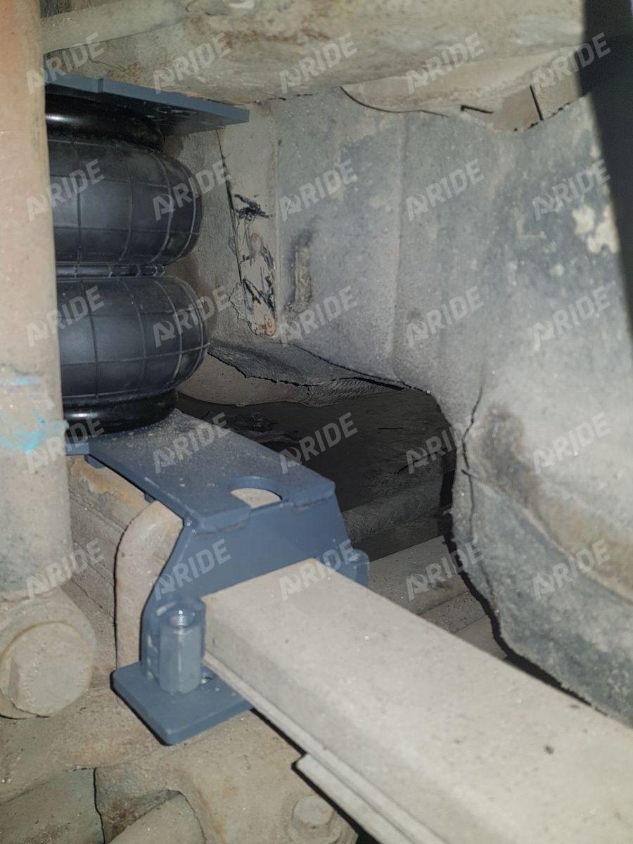Комплект пневмоподвески устанавливается в дополнение к штатным рессорам и не вносит изменения в штатные элементы подвески. Следовательно, данный комплект не требует вносить изменения в ПТС автомобиля. Пневмоподушка ставится между рамой с рессорами на специальных крепежных пластинах, идущих в комплекте. Верхняя крепежная пластина ставится на раму в штатные отверстия, между крепления ставится дополнительная поперечная распорка для усиления рамы и распределения нагрузки. Нижняя крепежная пластина ставится на мост.