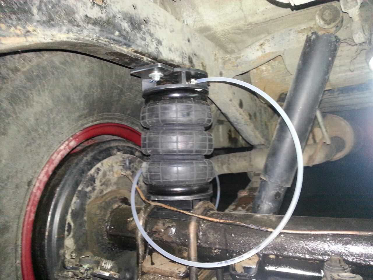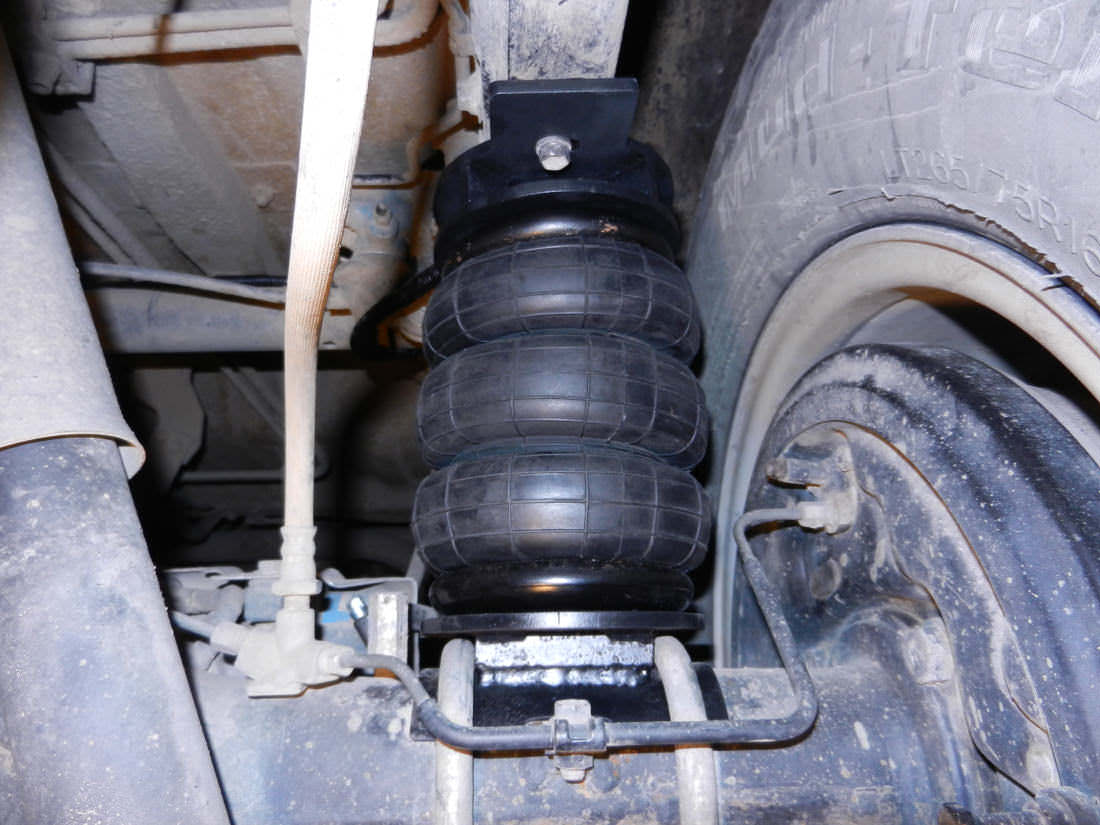 Комплект пневмоподвески устанавливается в дополнение к штатным рессорам и не вносит изменения в штатные элементы подвески. Следовательно, данный комплект не требует вносить изменения в ПТС автомобиля. Пневмоподушка ставится между рамой с рессорами на специальных крепежных пластинах, идущих в комплекте. Верхняя крепежная пластина ставится на раму в штатные отверстия, между крепления ставится дополнительная поперечная распорка для усиления рамы и распределения нагрузки. Нижняя крепежная пластина ставится на мост.