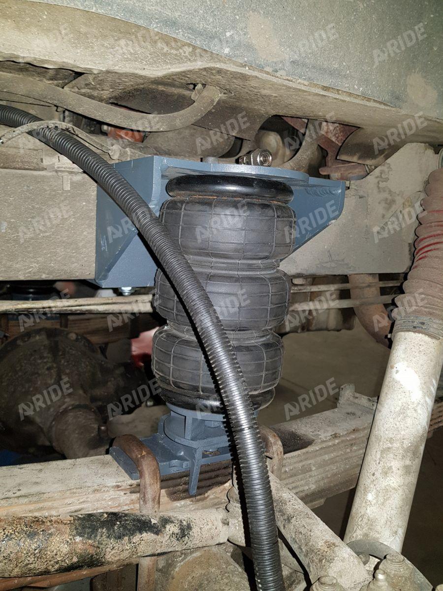 Комплект пневмоподвески устанавливается в дополнение к штатным рессорам и не вносит изменения в штатные элементы подвески. Следовательно, данный комплект не требует вносить изменения в ПТС автомобиля. Пневмоподушка ставится между рамой с рессорами на специальных крепежных пластинах, идущих в комплекте. Верхняя крепежная пластина ставится на раму в штатные отверстия, между крепления ставится дополнительная поперечная распорка для усиления рамы и распределения нагрузки. Нижняя крепежная пластина ставится на мост.