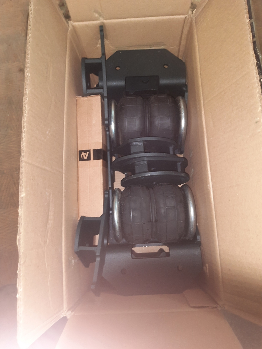 Комплект пневматической подвески разработан специально для автомобиля и включает в себя два пневмоэлемента, кронштейны для крепления к раме и мосту, крепеж, фурнитуру для накачки от внешнего компрессора, инструкцию по установки своими руками.