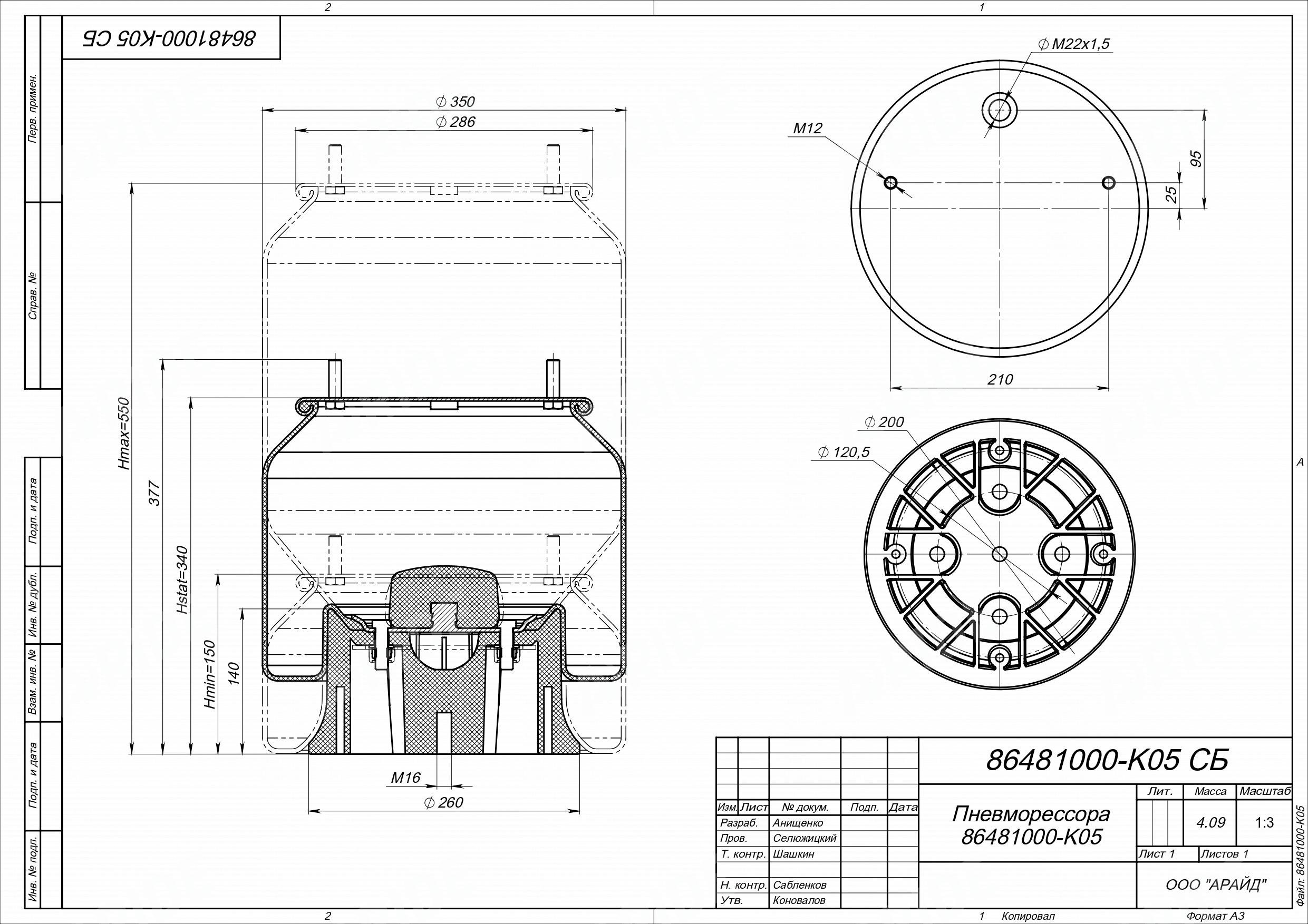 пневмоподушка со стаканом. 2 шпильки M12 смещение 25. 1 отверстие M22х1.5. Поршень пластиковый