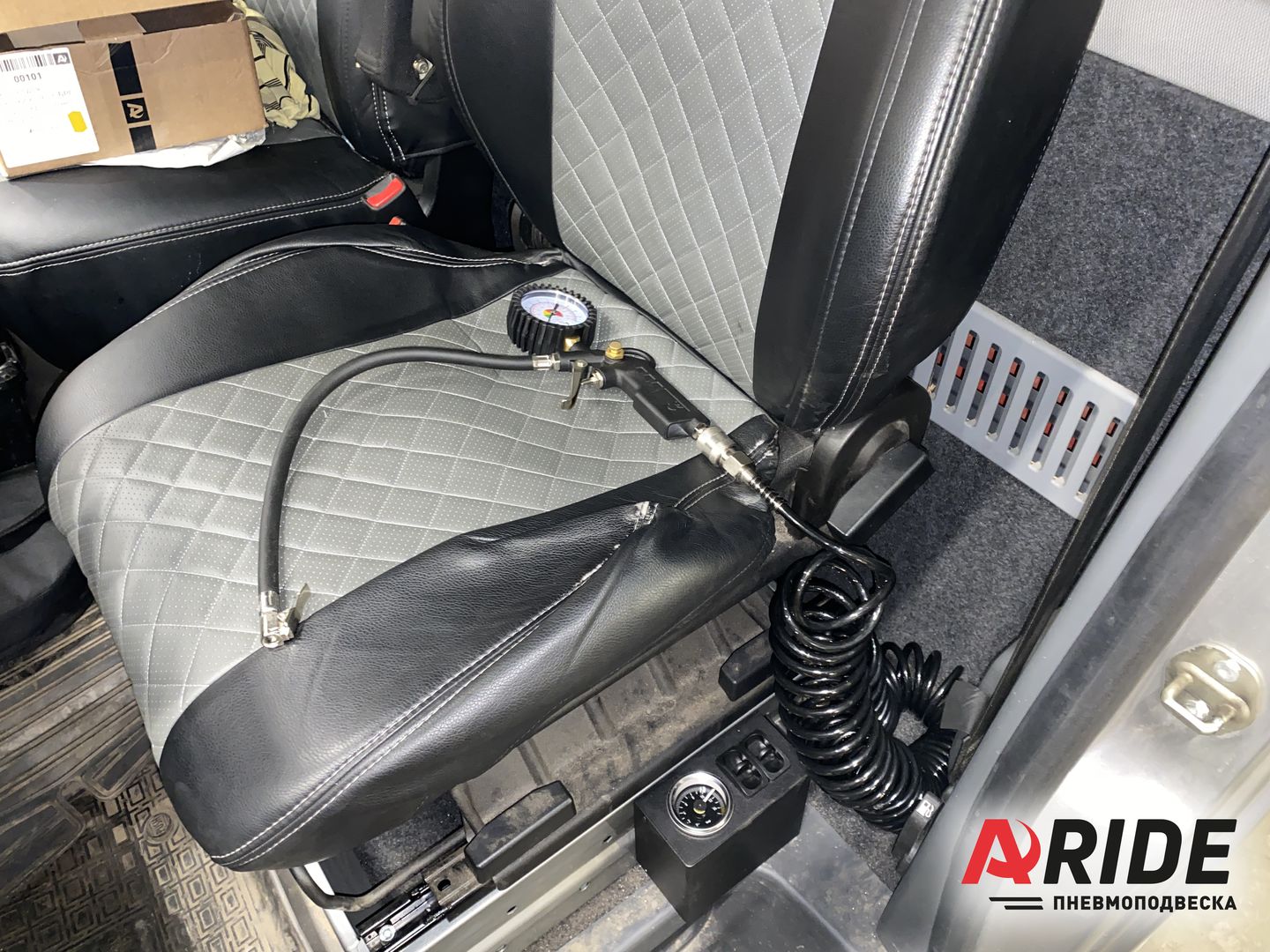 Для управления пневматической подвеской, была выбрана двухконтурная система управления - 2.150.ПС. В данной системе используется мощный компрессор - ARIDE 444 BLACK, десятилитровый ресивер, двухстрелочный манометр и две пневматические клавиши. Особенностью данной системы является не только высокопроизводительный компрессор и большой объём воздуха, а так же давление в системе, её пиковое значение достигает 10 атмосфер.