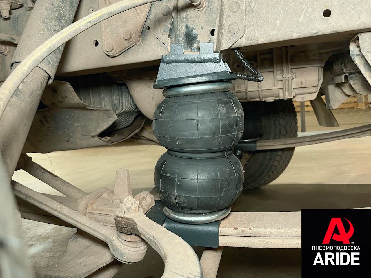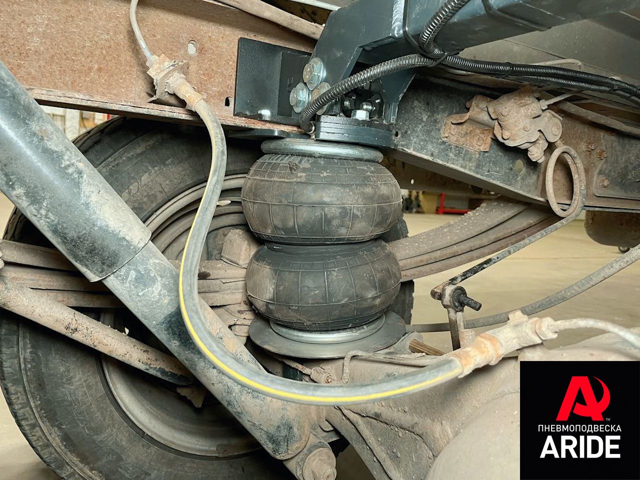 Данный автомобиль используется для перевозки дров в сельской местности. Зачастую множество факторов влияет на вес груза (объём, влажность и т.д.). При большом весе груза, заводской пакет рессор не способен справляться с нагрузкой, это касаемо не только задней, но и передней оси. Для того что бы защитить пакет рессор от износа, было принято решение по установке комплекта вспомогательной пневмоподвески на переднюю и на заднюю ось. Комплекты призваны не только разгрузить и защитить рессоры, но так же придать автомобилю комфорт в управлении, предоставить возможность регулировки клиренса при необходимости.