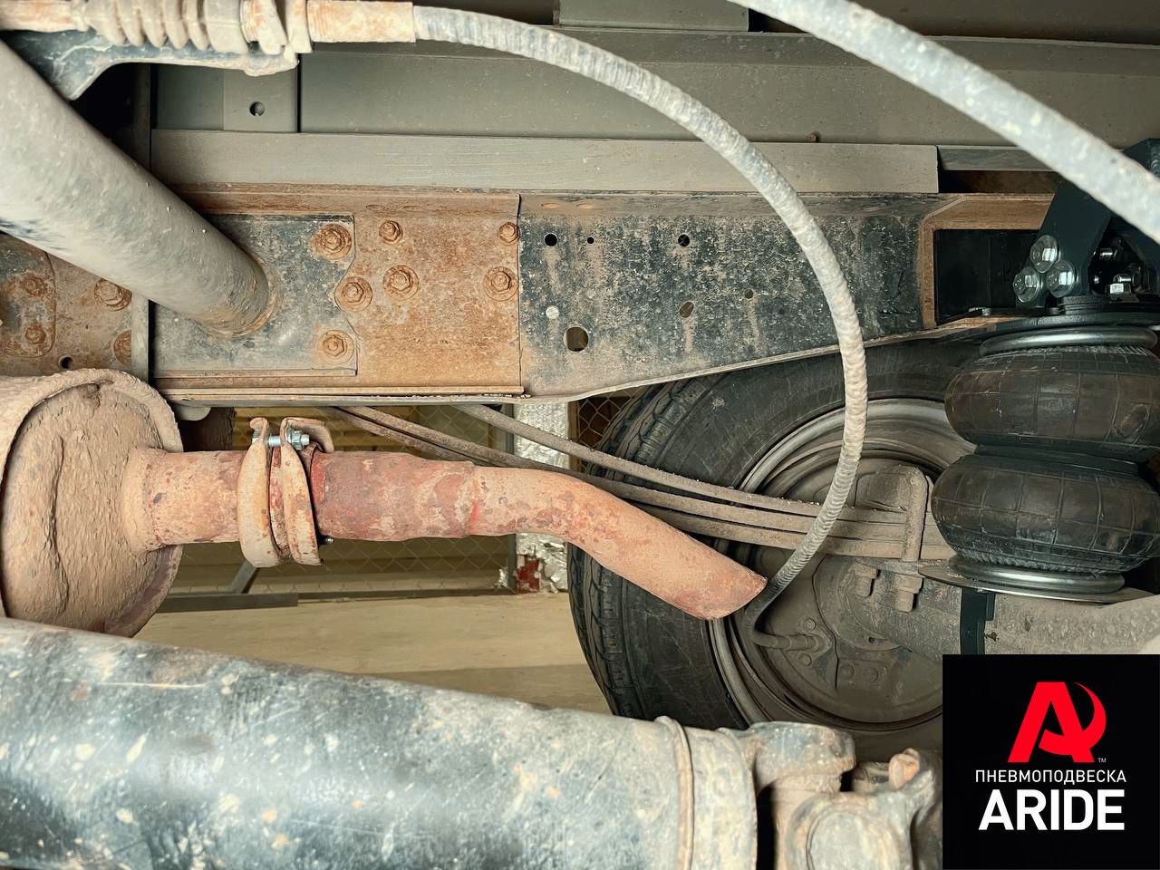 При помощи вспомогательных пневмоподушек, нам удалось компенсировать до 3000 килограмм на задней оси, и до 2200 килограмм на передней оси.