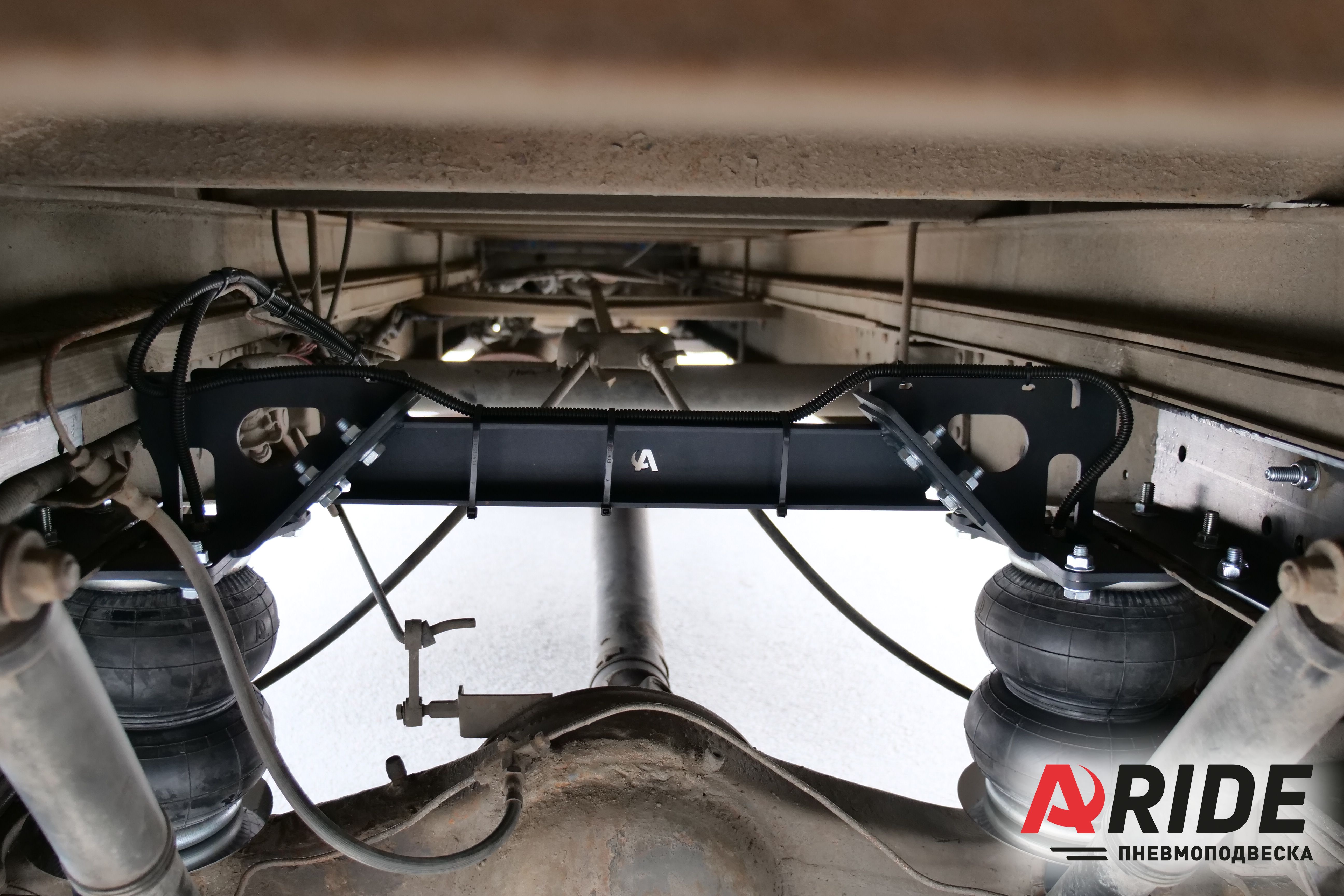 На заднюю ось так же был установлен комплект вспомогательной пневматической подвески. Комплект устанавливается между рамой и мостом. За счёт высокой эффективности подушек, удаётся компенсировать до 3000 килограмм нагрузки с задней оси.