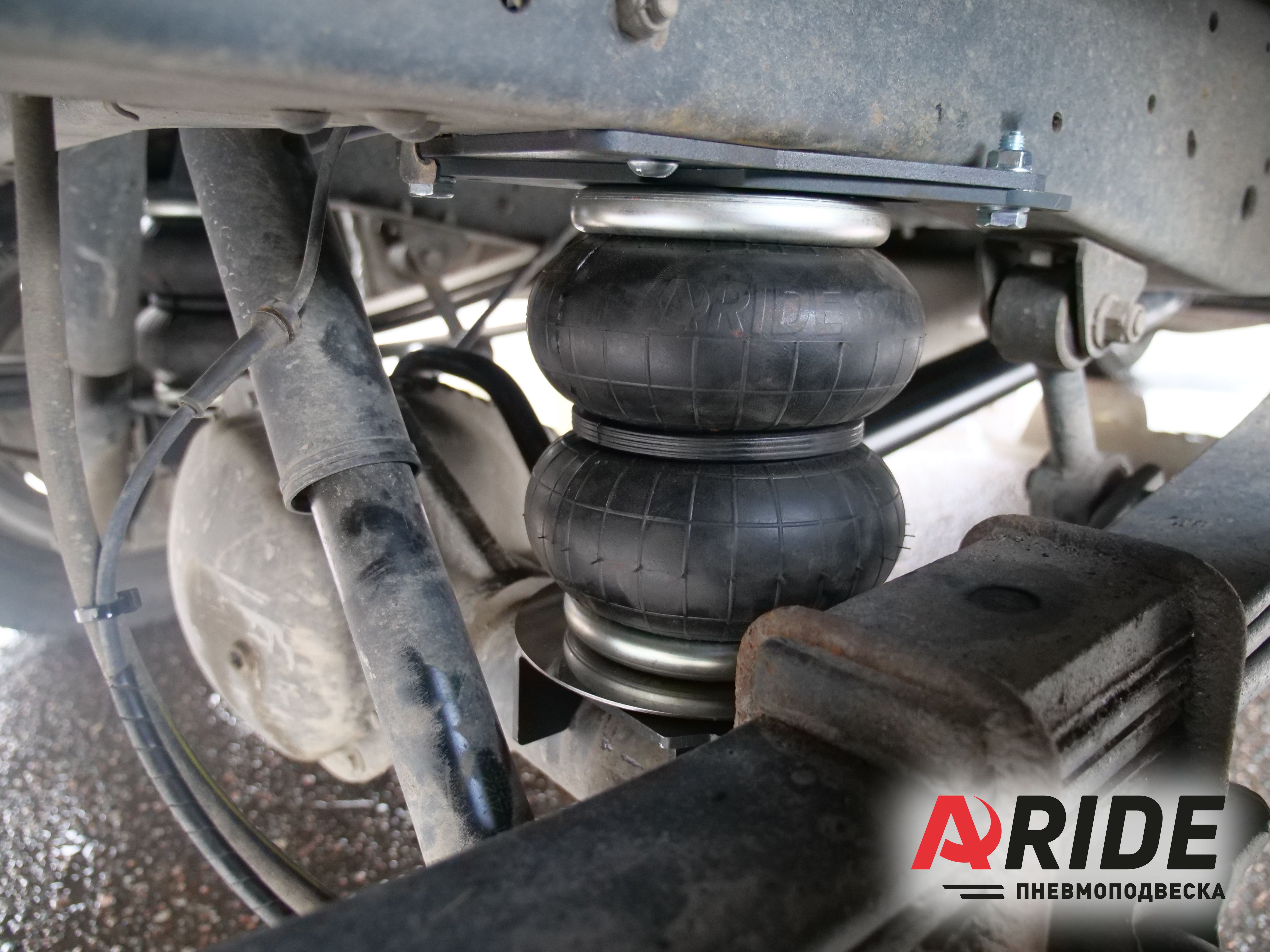 Как это принято, комплект состоит из двух пневмоэлементов 180D1, верхних и нижних кронштейнов, а так же поперечного усилителя. Верхний кронштейны устанавливаются на раму, и крепятся через заводские отверстия для отбойника. Нижние кронштейны устанавливаются на мост и притягиваются к нему через отверстия для крепления стабилизатора. При такой компоновке, удаётся снять большую часть нагрузки с рессор. Но безусловно правильным решением будет, чтобы рессоры работали в паре с пневмоэлементами. Для равномерного распределения нагрузки.