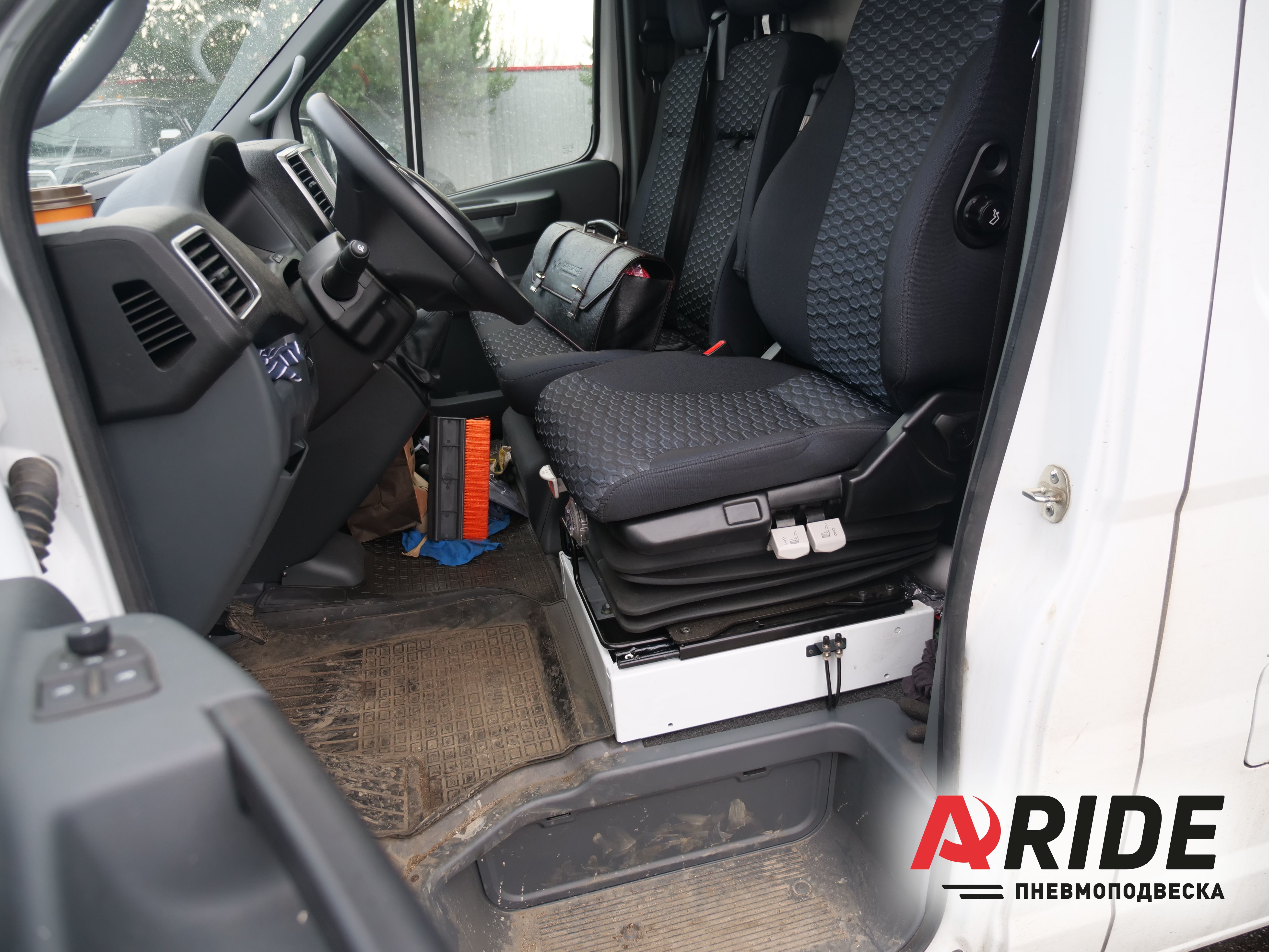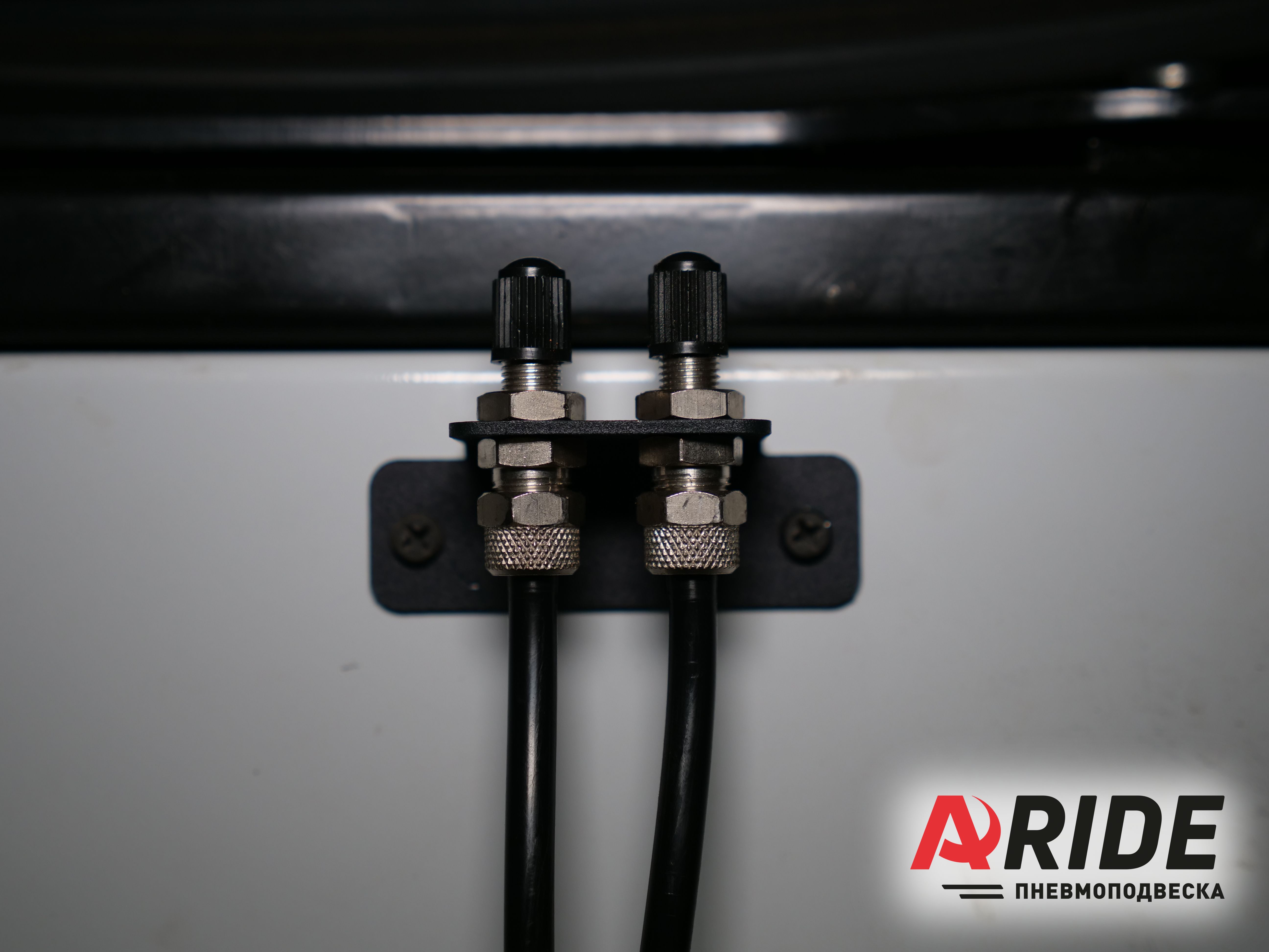 Регулировка давления в подушках осуществляется через два ниппеля подкачки. Для удобства пользования, они были расположены на нише водительского сидения.