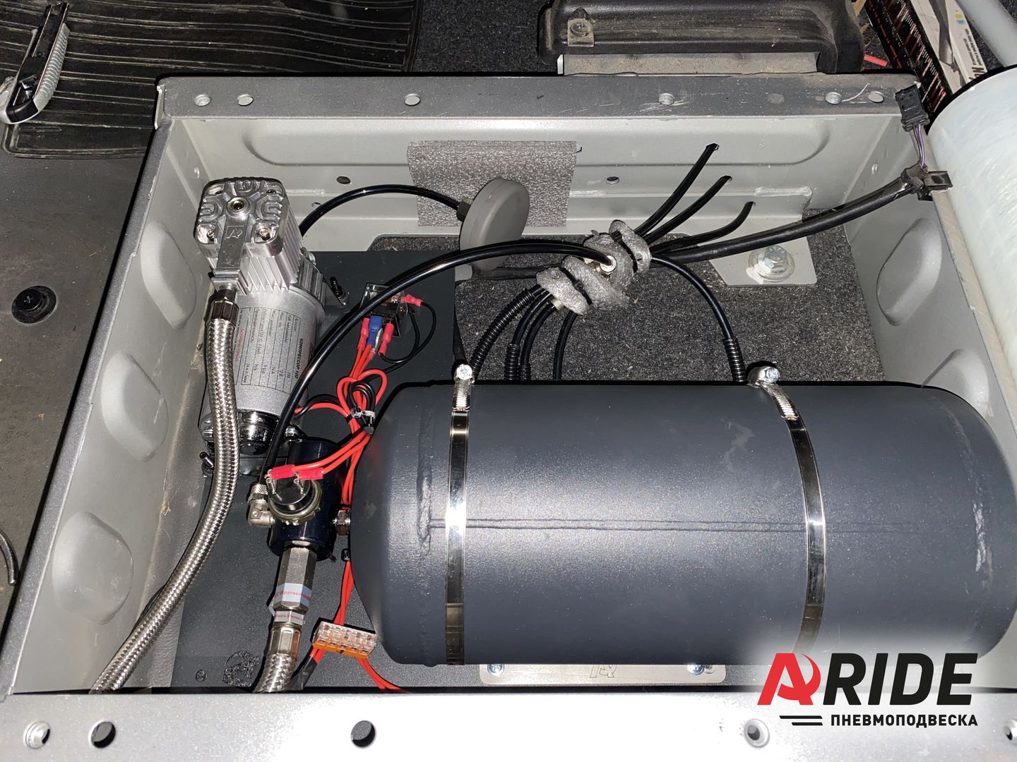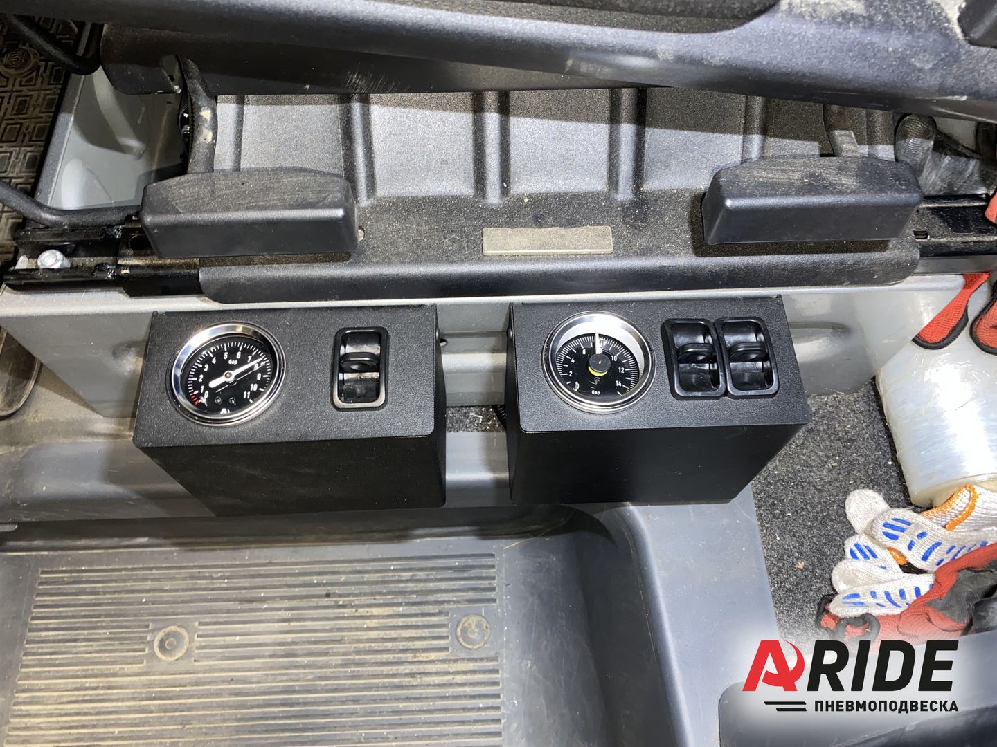Давление в подушках регулируется за счёт установленной трёхконтурной системы управления 3.120.ПС. Ключевыми элементами такой системы является высокопроизводительный компрессор ARIDE 100, 5 литровый ресивер, и блок управления на три контура. Вся система была расположена под водительским сидением. А блоки управления закреплены на подставке под водительским сидением.