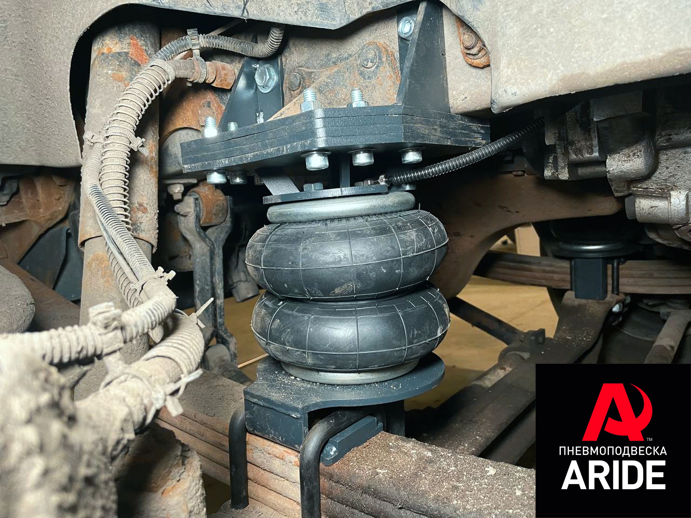 Передняя подвеска у него рессорная, и как это часто бывает, рессоры подвергаются износу, они сильно просаживаются и уже не имеют такой большой грузоподъёмной силы. В силу этих обстоятельств, передняя подвеска уходит в пробой и ездить на автомобиле становится значительно не комфортно. Для решения данной проблемы было принято установить на переднюю ось комплект вспомогательной пневмоподвески, который сможет значительно разгрузить рессоры. При помощи данного комплекта рессоры вновь будут работать как новые, управление автомобилем станет намного комфортнее, так как пневмоподушки будут забирать на себя часть нагрузки и сглаживать удары приходящиеся по подвеске. Так же при помощи вспомогательной пневмпоподвески удастся вернуть заводской клиренс, а если нужно, то и всегда возможно будет его увеличить относительно штатного.
