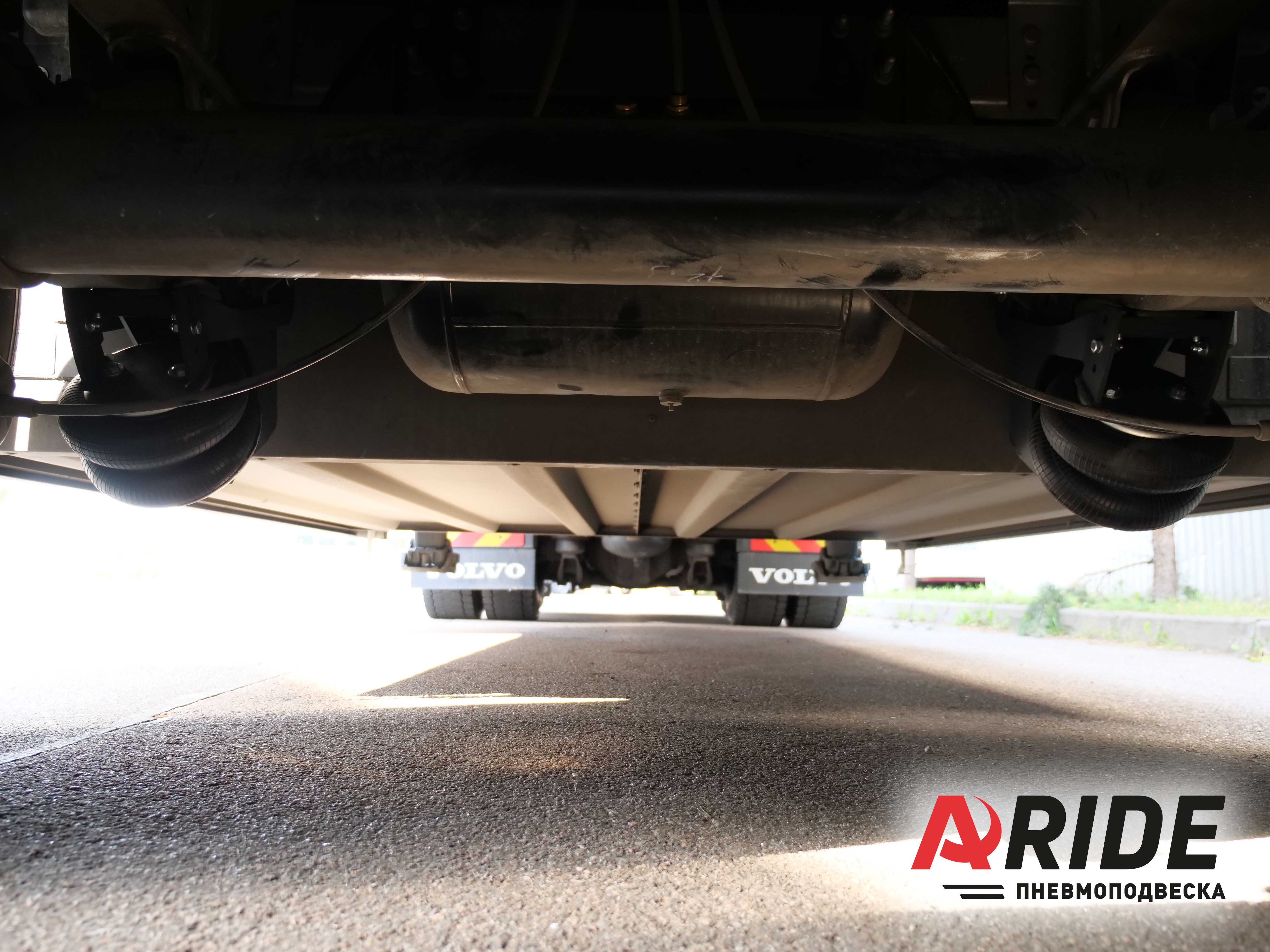 Подъём оси осуществляется за счёт раскрыва подушки под давлением. Именно за счёт давления пневмоэлемента на полурессору происходит подъём всей оси. Управление давлением в пневматических подушках осуществляется через специальную систему управления, которая так же была установлена на полуприцеп и подключена к заводской воздушной системе. Именно при помощи неё происходит спуск давления в заводских подушках рукавного типа, и накачка давления в пневматические подушки установленные для подъёма.