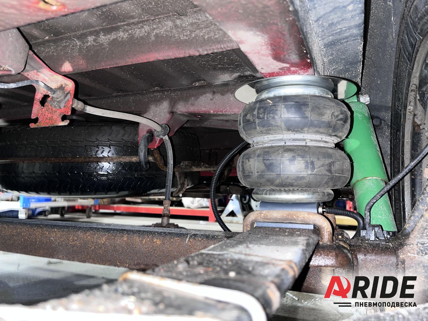 Рациональным решением является установка вспомогательных пневматических подушек в дополнение к заводским рессорам. Подушки устанавливаются ровно на место заводского отбойника. Данное место установки пневматических элементов выбрано за счёт следующих факторов - увеличение скорости и простоты установки, так же это максимально усиленное место на раме и рессорах. Так как в верхней части на раме есть заводская усиленная чашка, а нижняя точка упора, приходится ровно по центру балки и рессор. На раме пневматические подушки крепятся в заводское резьбовое отверстие для крепления отбойника, а нижние кронштейны устанавливаются за счёт заводских пластин на рессорах, и они уже притягиваются стремянными болтами. Это делает конструкцию максимально надёжной.
