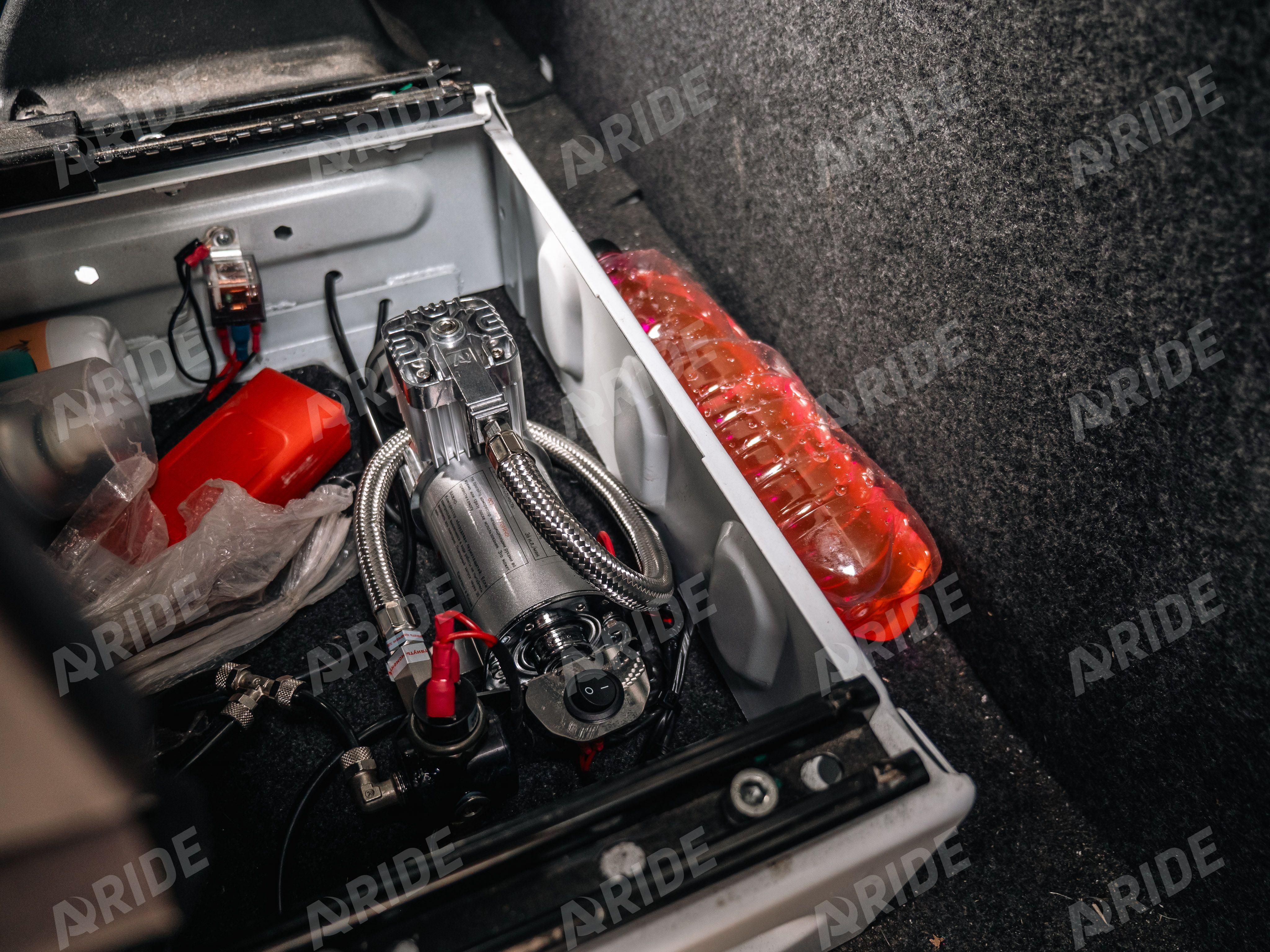 Пневмоподушки на данном автомобиле - это неотъемлемая вещь, так как идёт большая нагрузка на задний рессор пакет, из-за установленного гидроборта (MBB Palfinger) и тяжёлой изотермической будки от компании Автофургон.