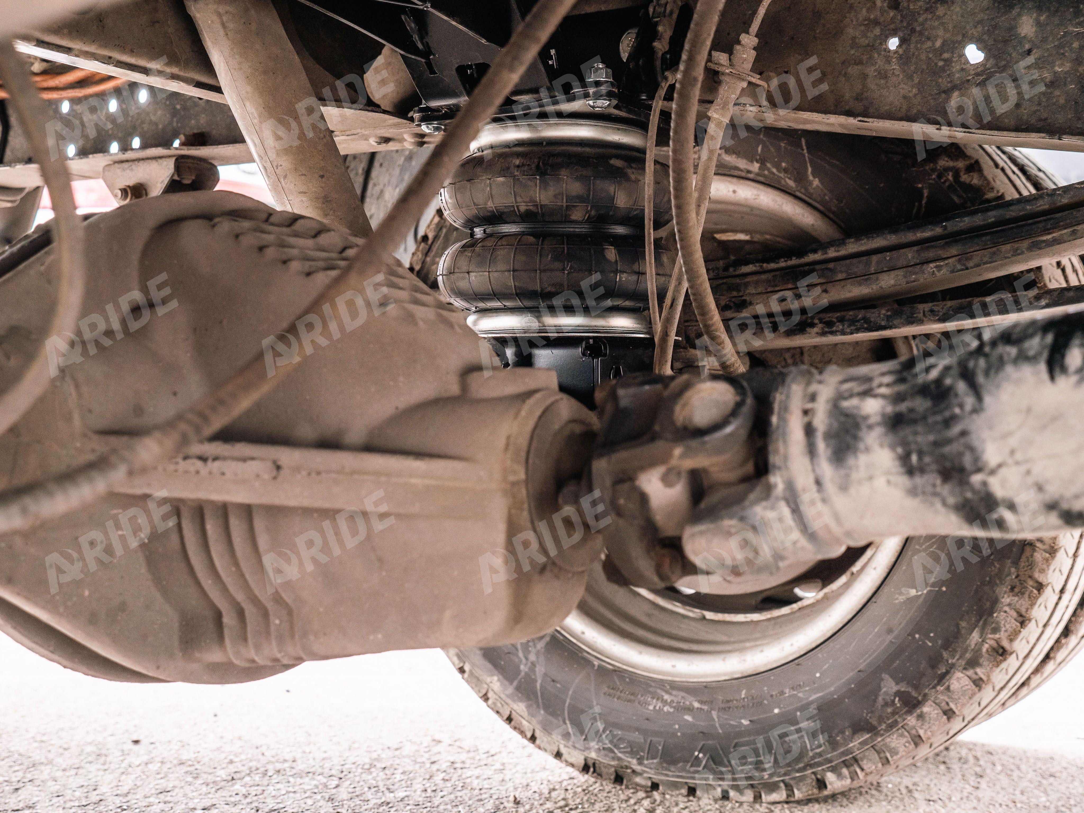 Данный комплект ставится в дополнение к рессорам и работает совместно с ними. Нагрузка равномерно распределяется между пневматическими подушками и рессорным пакетом.
