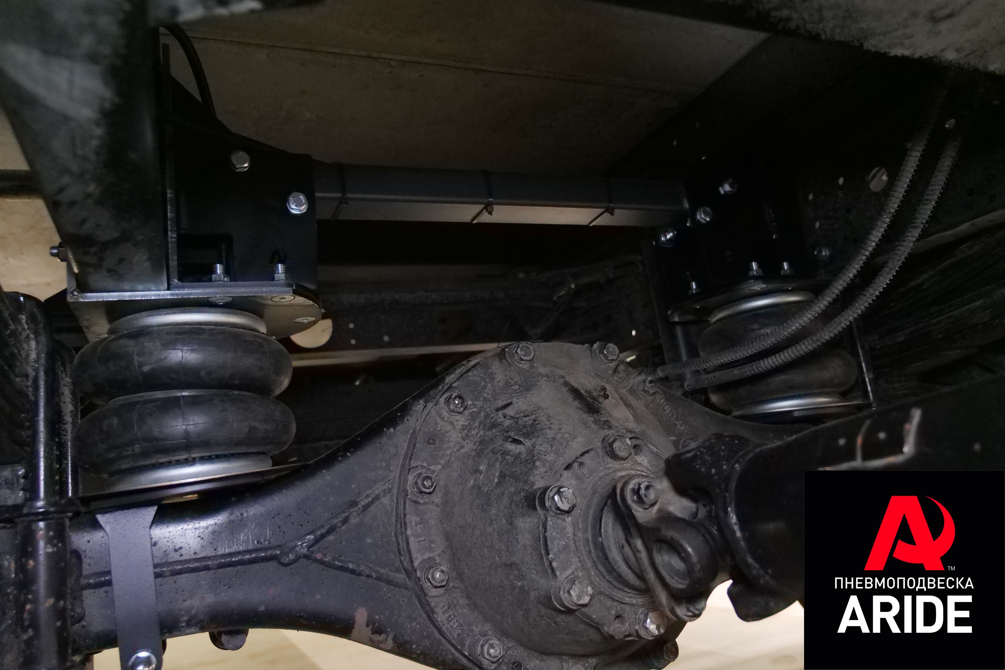 Нашими мастерами был установлен комплект на заднюю ось, в дополнение к заводским рессорам. Каждая подушка установленная на задней оси дала нам по 1500кг. грузоподъёмности.