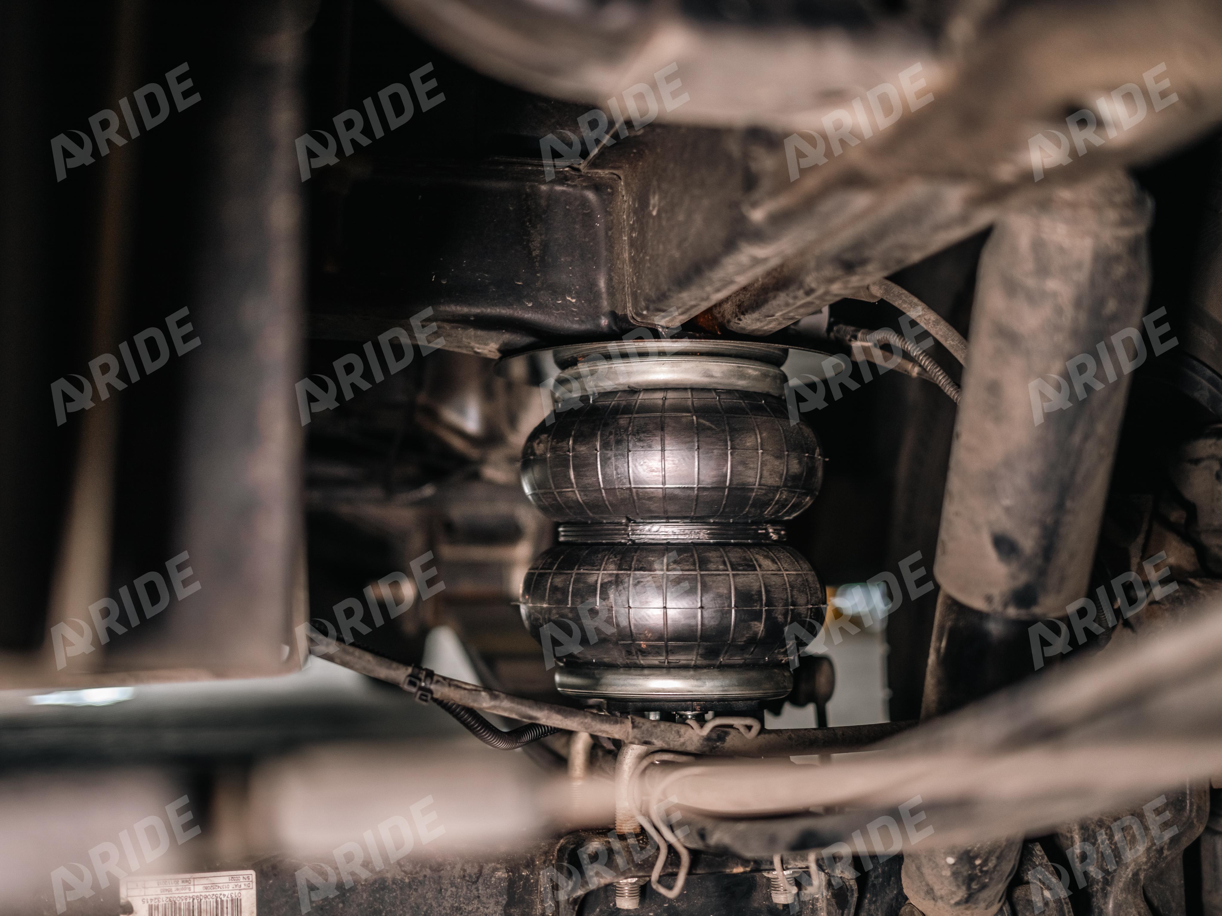 Для снятия нагрузки с рессор, увеличения клиренса и грузоподъёмности, на автомобиль был установлен комплект вспомогательной пневматической подвески. Так же была установлена двухконтурная система управления с 5 литровым ресивером. Такая система позволяет максимально быстро обеспечить нужное давление в пневмоподушках, а так же даёт возможность для подключения дополнительного оборудования, в виде пневматического сигнала или подкачки шин.